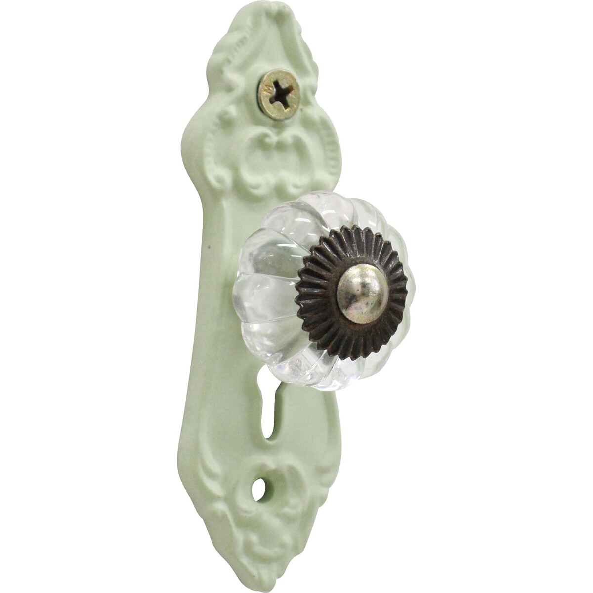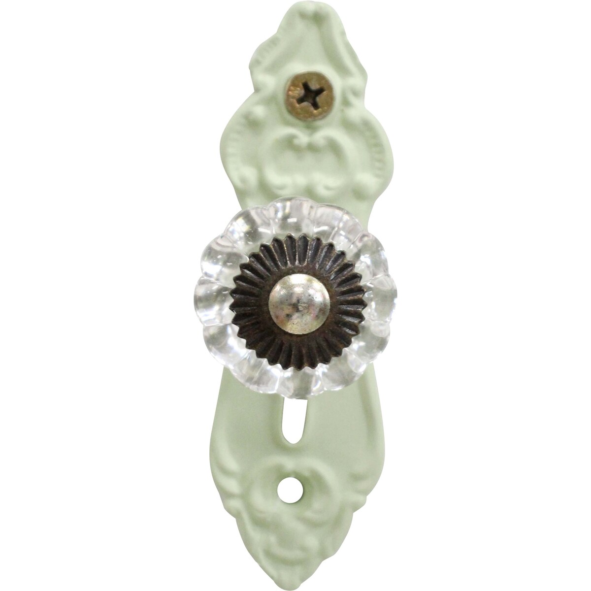 There are probably a few similar hooks about, but what we like most about this style is it manages to take those traditional Parisian door knob tones and adapt them for modern Australian homes without looking too done up or rustic. It’s got the classic scalloped glass knob with the flower-petal base plate, but none of the finish feels forced. No harsh metallics or golds here - just muted, genuine soft sage and brushed pewter.
