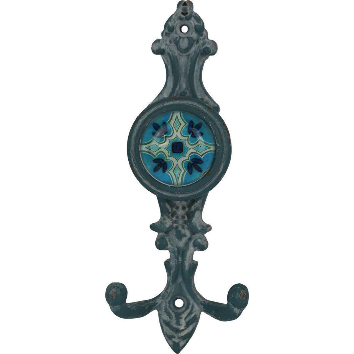 The blue pattern on glazed tile will instantly draw your eyes to its lovely structure. Made from solid metal, the double pronged hooks will make hanging of heavy coats and the kind much easier. The bracket is about 15 cm in height and the prongs jut out from the base in an elegant curve and have rounded tips. The dark colour f the metal vividly contrasts with the blue colour and the look of absolute antiquity is unmistakable. Add this to your hallway at the entrance or make it part of the house anywhere as it is the kind of tiny little accessory that eases out your troubles in terms of keeping your home a little more clutter free. When even the simplest of wall hooks come in such a glorious design one cannot but be showing it off in several of your space s - be it the kitchen for your pots and pans or in the washroom for your towels and clothes. The hook could be easily placed o the wall as the slot for the nails already is part of its structure.