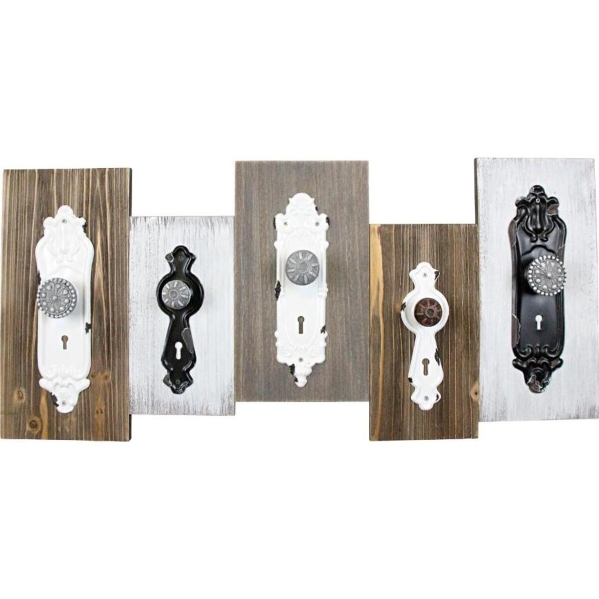 When you choose a hook bracket the most important feature of course should be the sturdy nature of the material and the ability of the hook to hold on well to even the most slip prone article -maybe silk scarves and the likes. Here is one that has five varied hooks all made of polyresin -round and solid in their placement as they have been placed on metal brackets that are further superimposed on MDF plaques fused into a beautiful design. Subtle colour usage, mixing of materials and textures and of course the undeniable shabby chic of this piece makes it a wonderful means to enhance the entryway of your home and of course its promise of keeping your home looking tidy is undeniable. The bracket has a height of 30.5 cm and its length is 66 cm while the prongs are 7 cm in depth. The mixing and contrasting of colours and background colours makes the look all the more interesting.