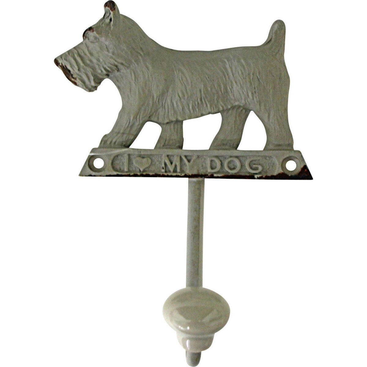 Unmistakably a terrier, the muzzle and the height as well as the shape of the head a dead giveaway-the beautifully antique feel hook is one way of ensuring that hangable remain where they are meant to be without taking up space atop chairs, tables and slung her and there- and of these the usual suspects are bags and satchels, caps and coats and all kinds of things which could other se be very well hooked. Here is a decidedly sturdy piece whose adorable presence will surely help in ensuring w ell organized space.
