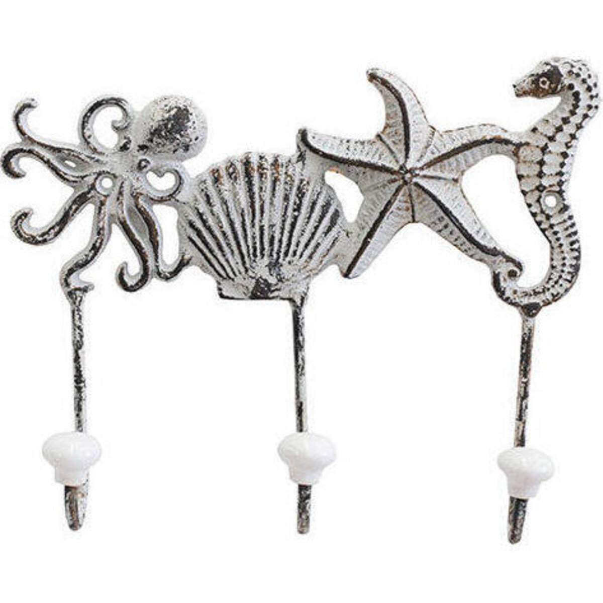 Keep your chair backs and table tops free of clutter by placing such gorgeously crafted sets of hooks that pack in so much drama in terms of design. Here is the best way to ensure that while at work the hooks also continue to render its service as a d?ɩcor item as well. The washed in white colour sea creatures are all linked together-all four-the mollusk, the seahorse, the octopus as well as the star fish are all bonded in unity as if declaring their new habitat as pretty much their own home. A beautifully designed compact and yet artisanal quality sturdy design set of hooks that makes the job of keeping ones' space looking good rather easy. Could be as welcome in any room of the house be it the kitchen the laundry room or even the children's' room where it would be especially be loved. Place it at the entrance of your home and give a jump start the look of your home to make it look more seaworthy or aqua themed.