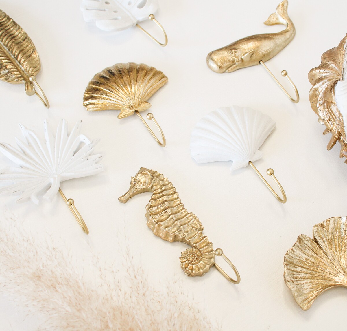 Crafted from resin, the upper body displays a clam shell in a sparkling white colour. The lower body is made of metal covering gently and delicately to a round tip. The rounded tip ensure that any material hang on it will not be damaged. The white colour shell coordinates gorgeously with the metal colour of the lower hook. Your closet, guest room, your own bedroom, all the entry way of your home- will delightfully well come this addition. You could pair it with other tropical or creature themed hooks on offer from Lavida- perhaps a few more of such clamshells placed in a row or in two rows above and below could make an impressive looking pattern on the wall, giving you the advantage of keeping your hangable items in a well organised manner.