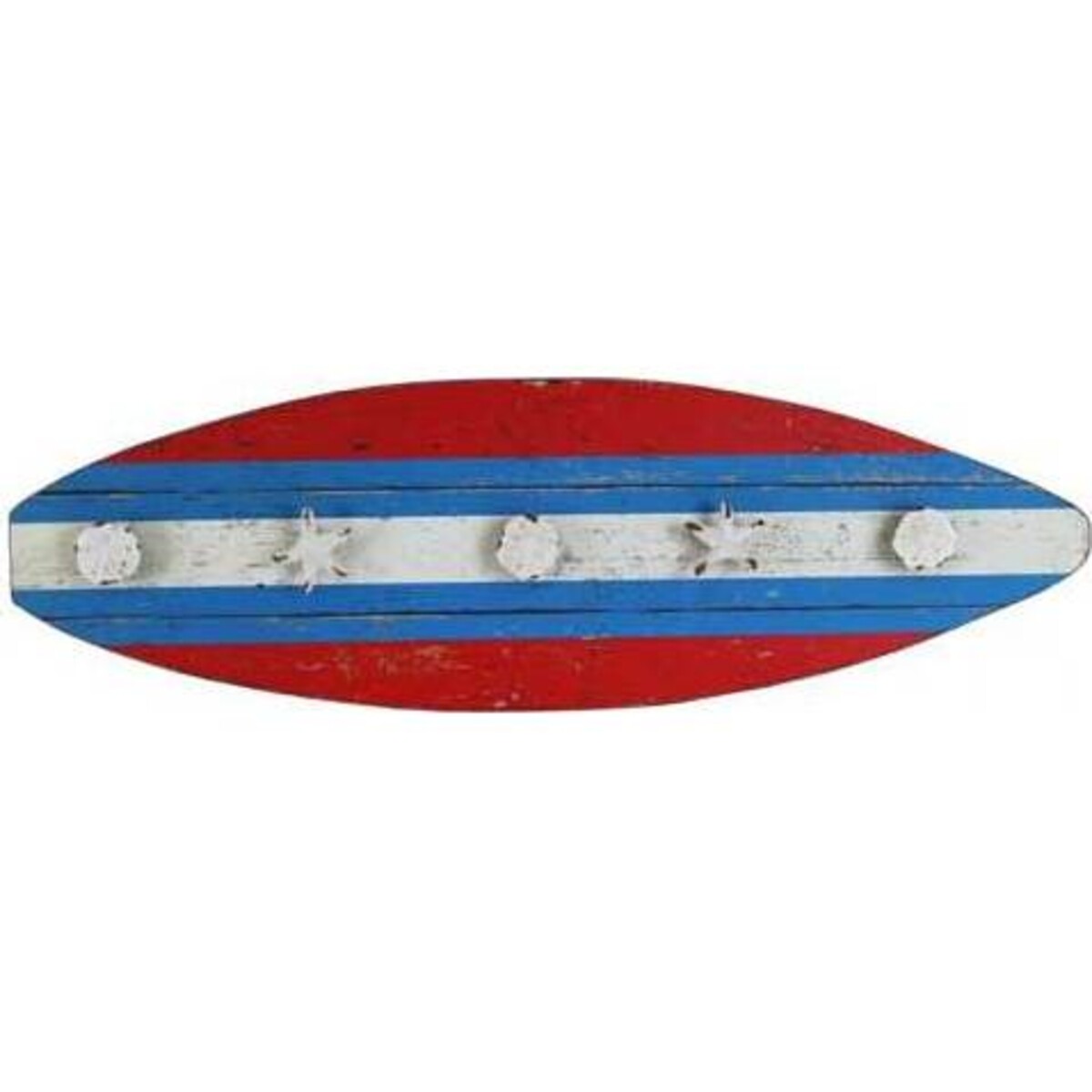 Introducing the Stripe Surfboard Hook from Lavida. Each piece consists of a horizontal red, white, and blue stripe surfboard with five white hooks in the shapes of sand dollars and starfish going across the centre. The hooks look lovely even when empty, but you can also make use of them by hanging up your wet suit, towels, and any other items you want to keep off the floor or chair. They work well inside or out and serve as a fabulous piece of décor wherever you hang them. Hang these pieces up in pairs for maximum efficiency and style.
