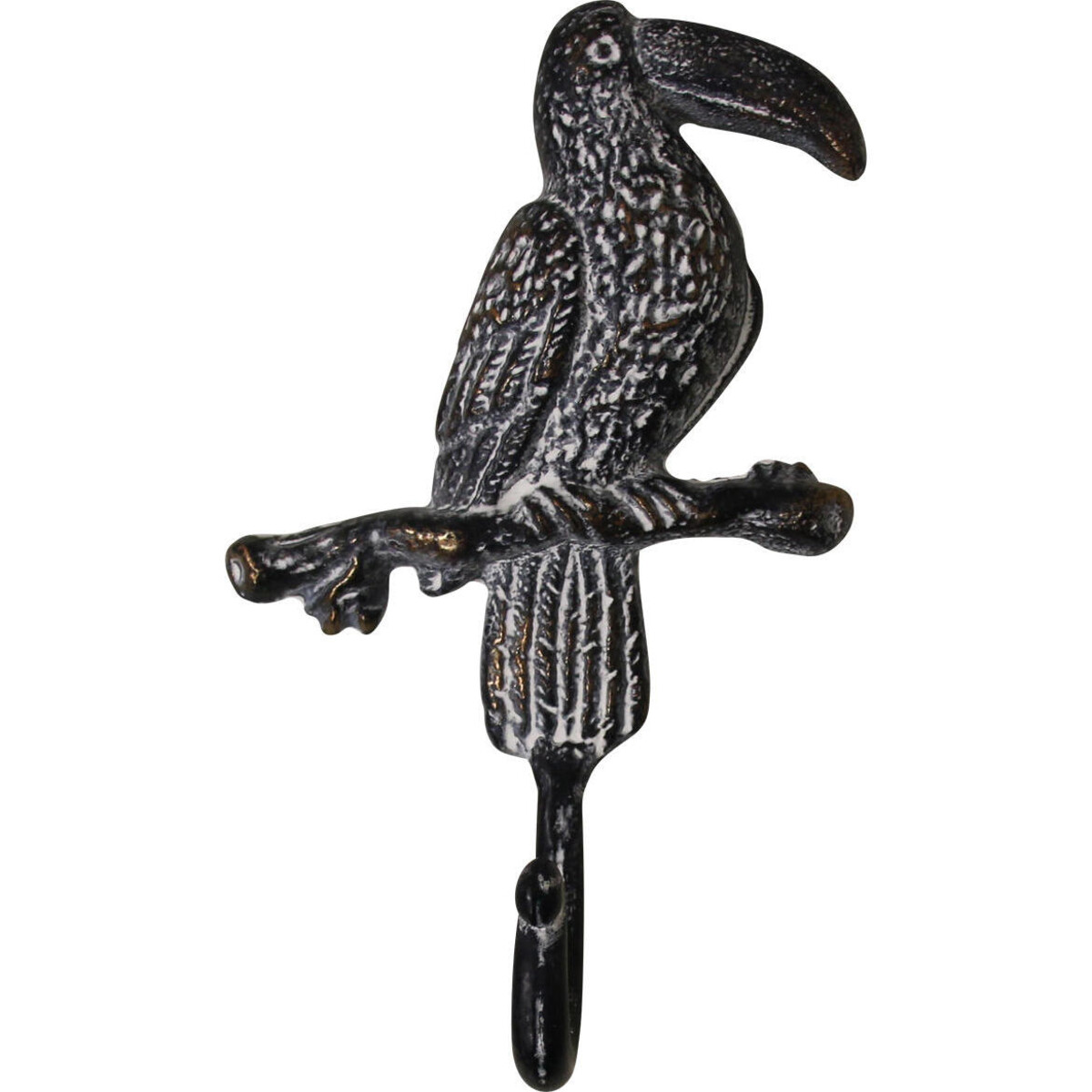 This metal toucan stands tall at a 19cm height along with the hook and is 11cm wide with around 4cm thickness and you get 32 of these in one carton at a great price. This hanger is a sturdy piece made of metal in the form of a bird toucan that is carefully painted in dual tones to bring out the features of the tropical bird like its large bill that is given a nice texture, its eye as though staring right at you, feathers and feet perched on branch of the tree. The body right from the wings, feet, the branch and parts of the tail are highlighted beautifully with a touch of gold - brass paint giving it a striking appearance.