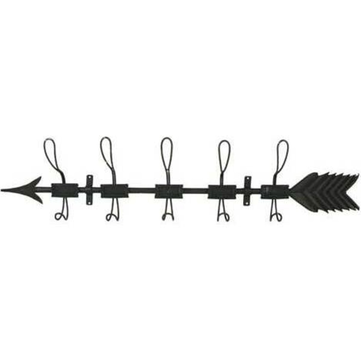 This set of hooks has been fabricated exclusively by the best metal craftsmen for Lavida. The design is simple - an arrow that holds about five looped hooks to allow easy hanging of coats, umbrellas or even bags. A simple design concept has been treated with so much care to make it look so very exclusive. The set of hooks comes with the provision to add it to nay wall where ever there is need for hooks - could be in the childrenés room, the kitchen or even the entrance of the home. The arrow truly looks like a real one right from its sharp tip to its feathered end. The hooks are made at the top of the loops as well at the lower end as well. An inspired design that will give a unique twist to the space where it is fitted.