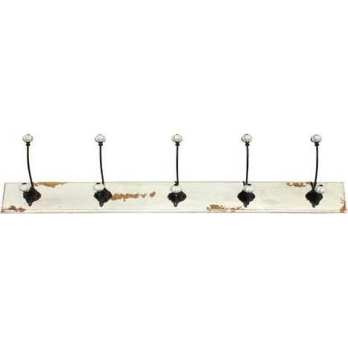 Introducing the Avalon White Hooks from Lavida. This lovely set features five black hooks set in a horizontal formation with a small white ball on the top and bottom to prevent items from sliding off. All the hooks are set on a white base that's worn to give it a vintage and weathered feel. Use these hooks in your bathroom, in the foyer, in a closet, or anywhere else in your home that could use a little organization and style. With fabulous and stylish hooks like these, the possibilities are endless.