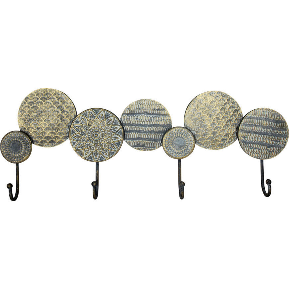 Trust Lavida to always bring to you the freshest of style ideas for the wall that make your organizational goals seem achievable-after all like al modern homes, your home too needs to work on the better usage of wall spaces and what could be more accurate than the presence of hooks that can be sturdy and resilient organizers. The hooks are of course the main draw in this attractive piece but more than that is the beautifully captured prints on the metal discs. Ornamental hook brackets such as this lend the wall a design effect that blends in well with a vintage feel as much as a shabby chic kind of feel. The hook bracket is 50 cm in length with diversely patterned discs making up the background while the four round ended tips make up its sturdy structure. Suited for the entry way, the closest space or even the kitchen or your own bedroom, where you could think of a space to keep your scarves and coats hanging.