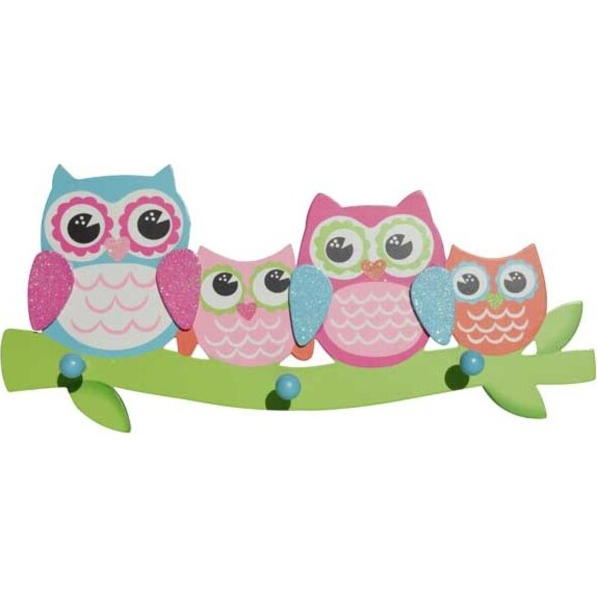 Owls have always been considered as one of the cutest animals that thrive in the planet, what with their overly large eyes and seemingly round bodies. These attributes are greatly replicated by the Hooks - Colour Owls. The item has three hooks placed at strategic distances to ensure that whatever hangs in them have enough space to dangle in. Although hooks such as this are commonly used as towel holders in the bathroom; however, the item can also be placed in other parts of the house like the bedroom, for example, to hold used clothes or small handbags and so on. This cute item is just bursting with lively and lovely colours. The item features four owls that sit on a plain green branch. As plain as the branch may be, the owls are nothing but plain and boring. Each owl is of a different colour from the other, making a great and colourful and functional display.