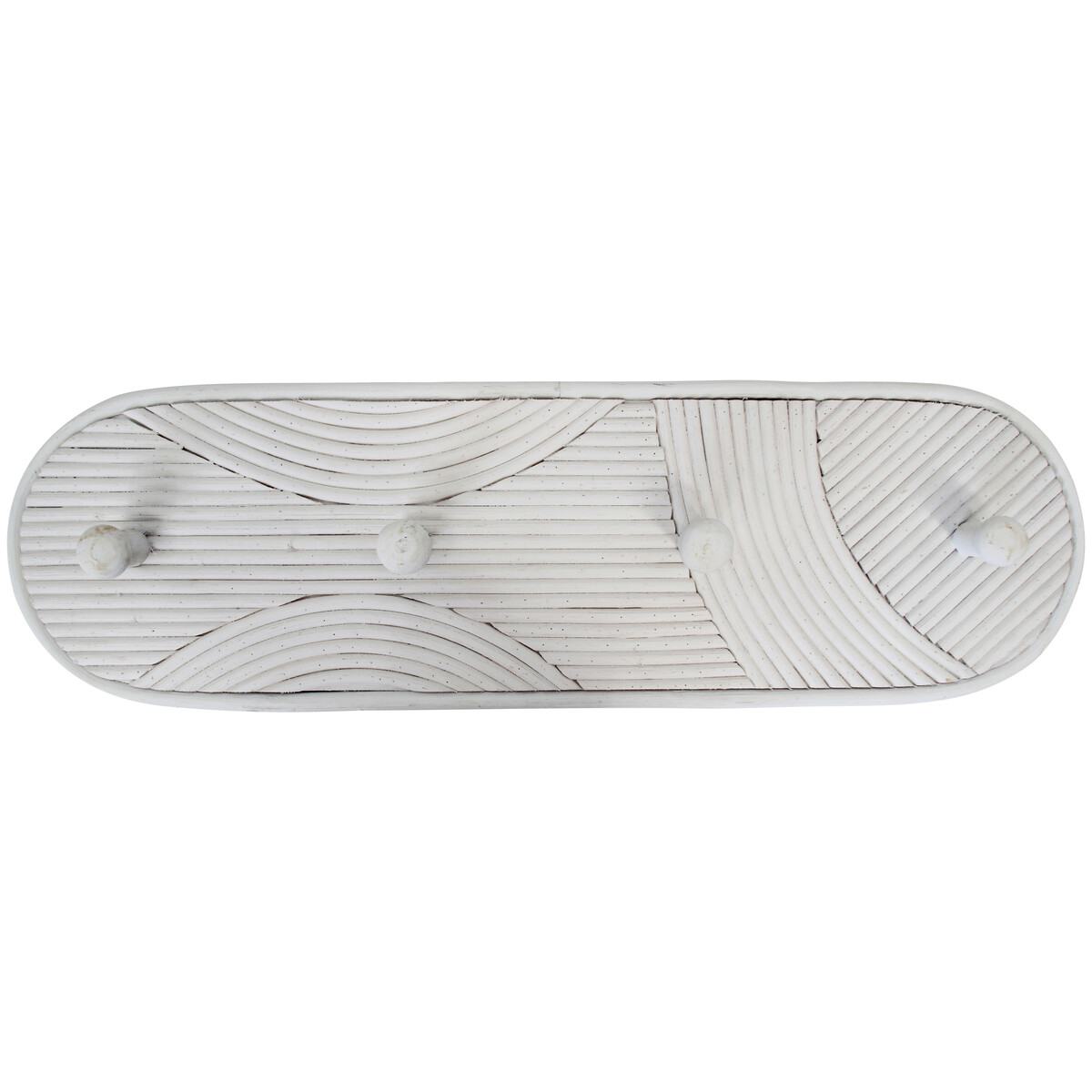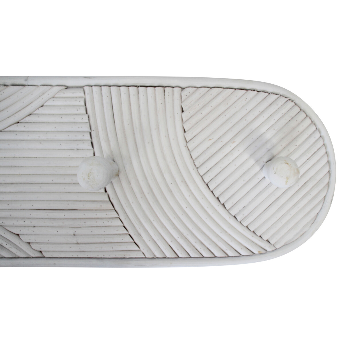 Hooks on the wall have been a traditional means of keeping your home well organised. They hold your hangable articles and keep them within reach. The unsightly look of jacket hanging from chair back, caps sitting atop tables, and bags carelessly flung here and there, can now be a thing of the past. A bracket that can fit onto small wall spaces be it in your own bedroom, the children's room, the entrance of your home, or even your bathroom. There is adequate space between the four prongs on the bracket. It is easy to place on the wall. The washed in white colour helps it to blend in perfectly with the wall colour- however pale or however dark it might be. It is a sturdy piece, and its gorgeous pattern lends a fresh update to the wall in terms of looks. It is oval in shape, curving gently, and its abstract pattern made from pieces of rattan, adds to its appeal.