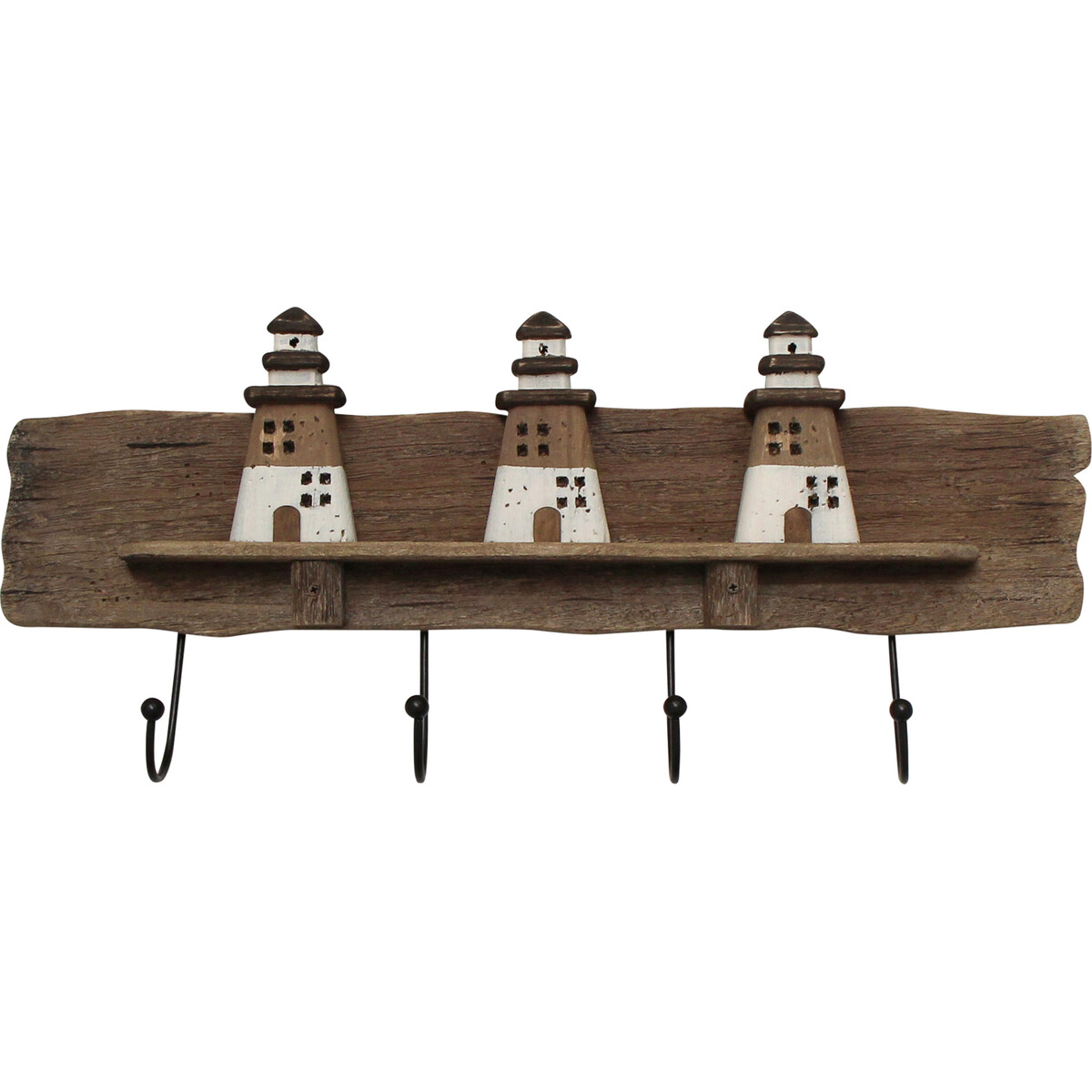 Artfully combining two different materials, this Hooks Lighthouse Shelf is surely a visual spectacle that would arouse the visual interest of customers no matter where you choose to display it in your shop. The hook features a flat, rustic looking wooden plank. Attached to this are three lighthouses painted in white and brown. Plus, four black painted metallic hooks which would hold up whatever is hanged on them quite easily. There are as many as 21 of these products in every carton that you choose to buy today.