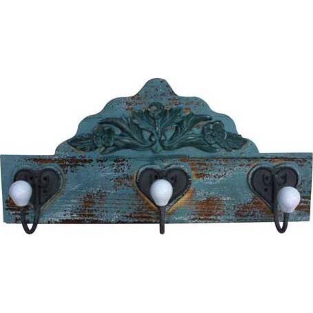 Introducing the Hooks Loop 3 Heart, the answer to your dilemma of time spent looking for your misplaced items. This wooden aged decorative accent isn't just beautiful, it's also functional. It has an elegant carved design and scalloped edges at the top with three hearts horizontally carved into the piece with a white hook hanging from each one. You'll love displaying it in your home and find it much easier to get out the door in the morning now that all your necessary items are in one area.