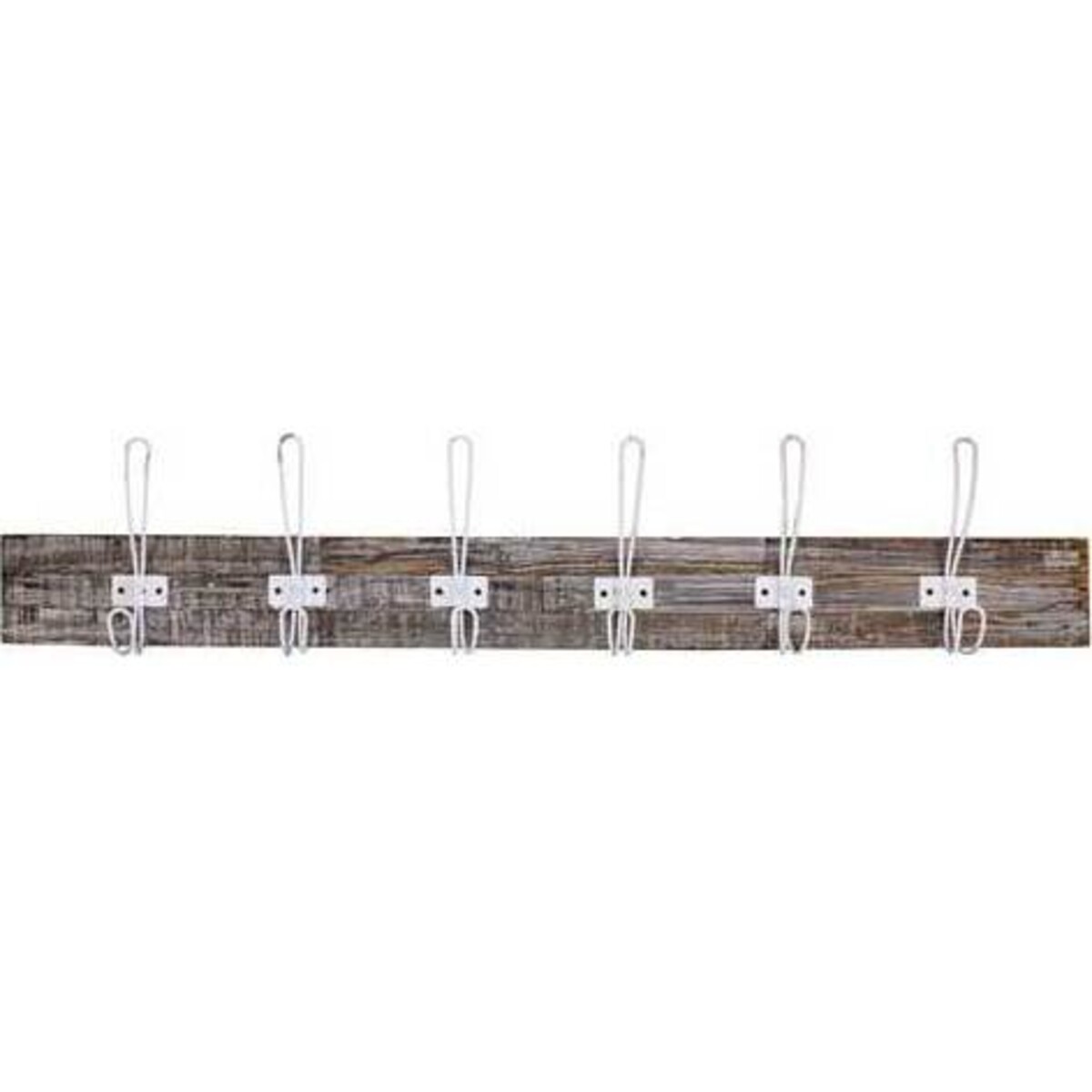 The hook set has six hooks made of metal warped to crate loops that are then shaped into hooks. There are six such hooks fixed on a flat wooden plate that is 100 cm long and about 20 cm wide making it a large horizontal space that the set will take up ion the wall. The folded metal will give the hook great strength increasing its tensile ability. The set would be extremely useful wherever some heavy things need to be hung, like wet towels, or denim fabric, or maybe even a school or college satchel loaded with things. Hooks when placed on walls will help reduce the litter and things like caps, jackets and even sling bags can be placed there - conventionally of course it also provides space for umbrellas and hats. The broad stem from which rises the six hooks is made of wood given a paint wash and each of the hooks have a lower and upper prong thus making them all the more versatile.