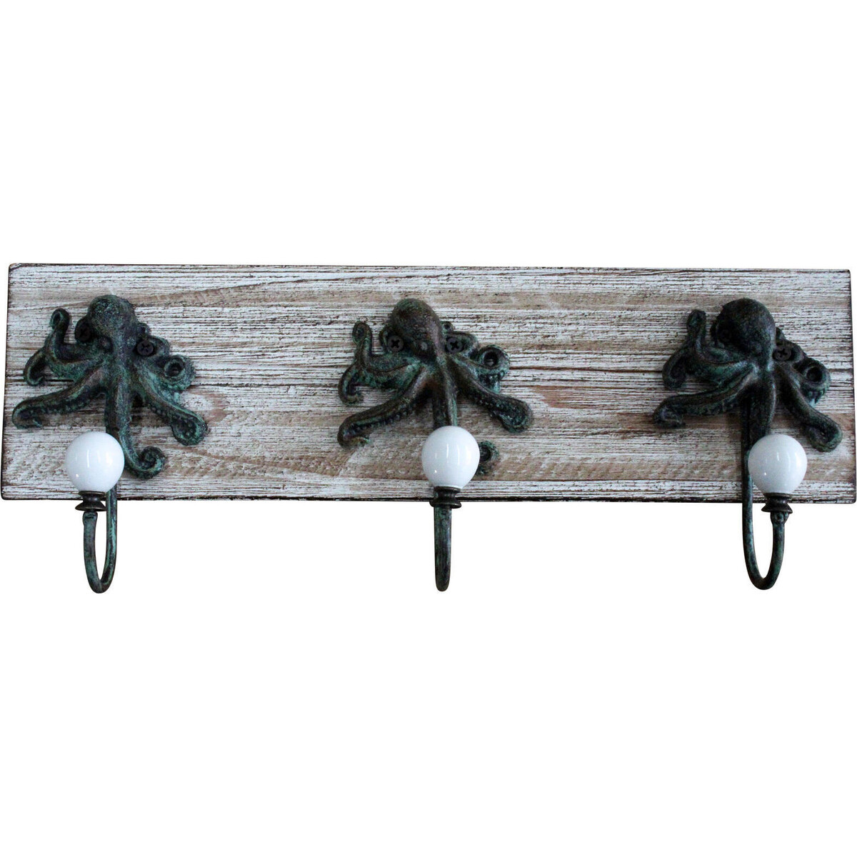 Crafted from metal, the three prongs on the bracket are attached to the wooden base with the help of these tiny creatures whose detailing and design will leave you amazed. Well defined in every sense they make up the very reason why this simple bracket having three prong makes so much sense especially if your heart lies in all things marine and you wish to give a similar theme to your spaces. after all spaces need hooks to keep hangables in place and wat could be more desirable when you find one that not only features a firm and sturdy design, but comes replete with a shabby chic flair that is modern and yet traditional in its appeal. Made of wood and metal, the 40 cm long bracket will be perfect for entryway walls to help hold on to your heavy coats and jackets, the round tip hooks help hold on to any kind of article without damaging the fabric and its round tip in fact adds to its utterly charming well finished looks. Aligned perfectly to your marine look space, it's your finest option for keeping hangables well.