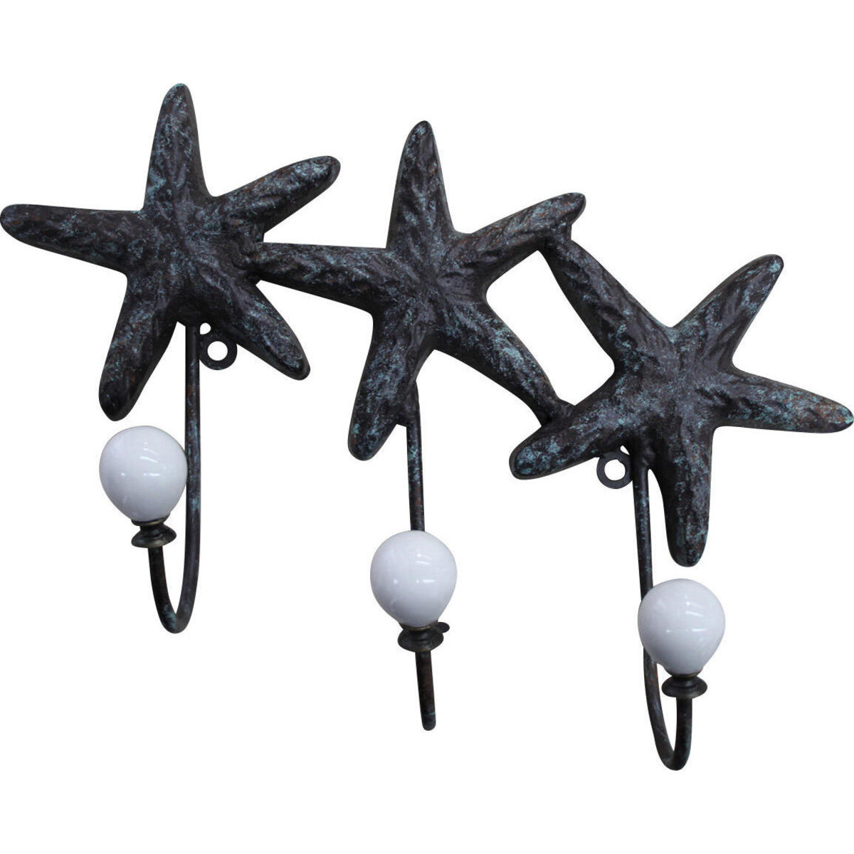 Add a sturdy bracket with several prongs for that all-important accessory for keeping all your hangable in one place. Add this to the entryway of your home, and you will find that the coats, jackets that usually litter the space with. The bracket has been designed to add to the marine look that your décor possesses-perhaps you could simply add it to that one space that you wish to completely adorn with things marine-maybe the entry way where adornments or art work on the wall could be accompanied by this wall bracket. Crafted from metal and MDF, the three starfish ,e ach displaying intricate details , play host to hooks that have been tipped with white ceramic knobs that add to their utterly charming looks. About 29 cm in length and 20 cm in height-the round tipped hooks are arranged in a manner that one is higher than the other thus adding more elbow room for all that is placed there-easing out the usual cramped look that hooks have.