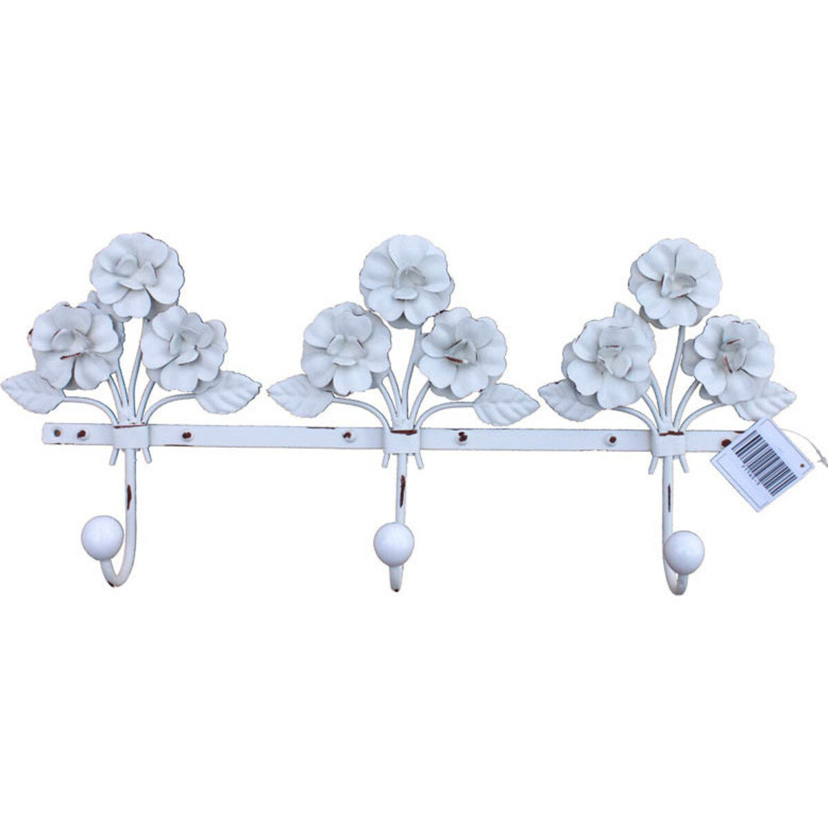 They consist of a single bar with three bouquets of flowers attached side-by-side. Each bouquet is comprised of three flowers with several leaves around them. The flowers have a slightly worn appearance which only adds to their charm. The bouquets are bunched at the stems and flow out into three separate hooks that have a ball at the end. The three hooks allows for the function and organization with a touch of elegance. They're not only sturdy but are also beautiful to look at. They would make a lovely addition to any home and can complement almost any style of d_cor including romantic and traditional. In addition to hallways, they would be ideal for use in bedrooms, bathrooms, closets, porches and any other small space.