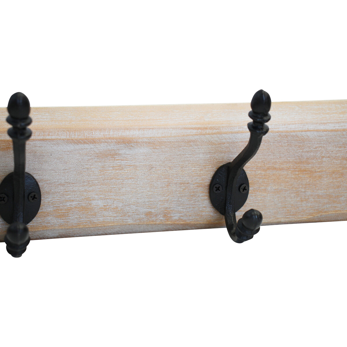 When you combine the need to keep your hangable within reach and yet neatly slung over hooks that keep them so-you arrive at the best option for such a desire-a set of true to word solid hanging hooks for satchels scarves, coats and jerkins, and all such things that you could simply sling on them. Made from wood and metal, the long 60 cm bracket has four solid hooks each with two prongs thus allowing you maximum usage of the space. the hooks are fairly apart from each other so that while hanging heavier coats you do not feel terribly cramped. From your caps, to mufflers and your umbel, there is plenty that could be placed there-be it for your own closet space, entrance of your home or your kitchen such hanging brackets are needed almost in every part of your home, this one is easy to place on the wall and loos classic in its neat design.