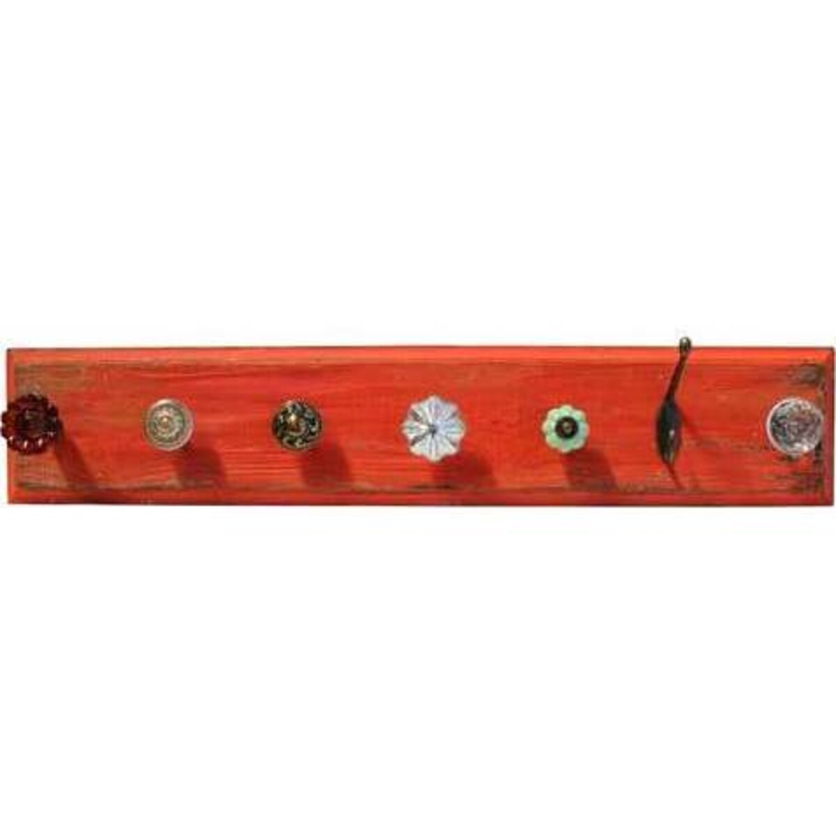 The hook bracket is made of wood and is about 60 cm in length and 12 cm in width. The ingenuity lies in the perfect blending of experimental designing and the look of colour and balance created with different designs of hooks - some made of metal. There are altogether seven hooks with rounded tips - blue, white, natural metal coloured and even black and amber. To create a harmonious mix of all theses is not a mean feat. The hooks perform well as hangers for coats or bags and umbrellas and there is adequate spacing between them. Not a discrete little piece but one that will demand attention for its quaintness, this is one shabby chic design idea that will be loved by all who look for uniqueness and sensible utility rolled into one. So as they say that genius lasts more than sheer beauty - here is this lovely piece that will hold its own amidst all other decor pieces with the ingenuity of its design.