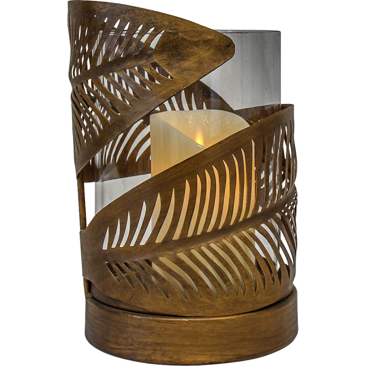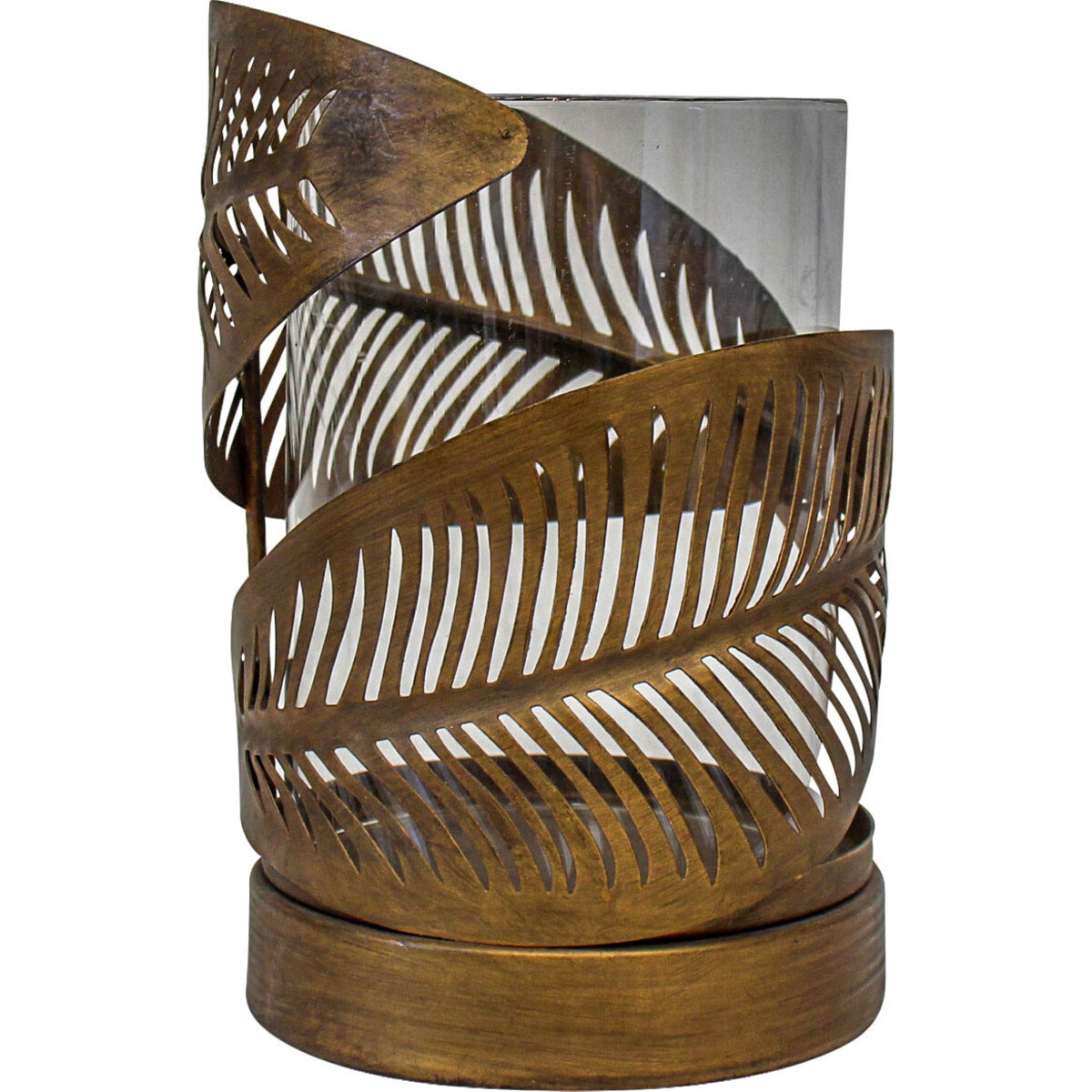 Showcasing an artful imitation of a grand foliose design, this Hurricane Abstract Leaf is certain to make the most decorative statement wherever it is placed, used or displayed. Even without the use of its illuminative functionality, it is suitable for use as a standalone object of art which would help elevate the decorative outlook of interior spatial setting. The metallic lea-like crafting is luxuriously painted in gold colour while it curves around in a lovely pattern around the crystal clear glass insert.