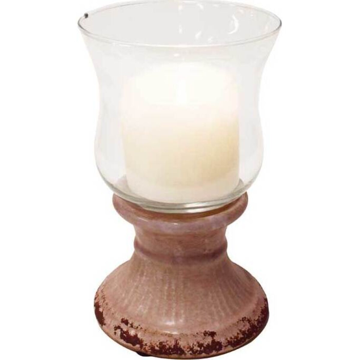 The hurricane Blossom is made with handcrafted ceramic and glass with all the trappings to make it a cherished piece of decoration in any home. Homes need the look of class, warmth and colour and in a way also reflect the personality of the individual. This gorgeous handmade piece in burnished pink with a slight tarnished finish to give it an antique look truly makes a space look special, warm and so very cosy. Candle light dinners, cosy little evenings in the flickering flame of this hurricane glowing in a corner will be its greatest appeal. A sure pick for those who like their intimate areas of the home look warm and inviting. Doubling up as decor item, this candleholder is an expert piece of craftsmanship and great design. It's a stunning addition to home decor that will be cherished by all who own it.