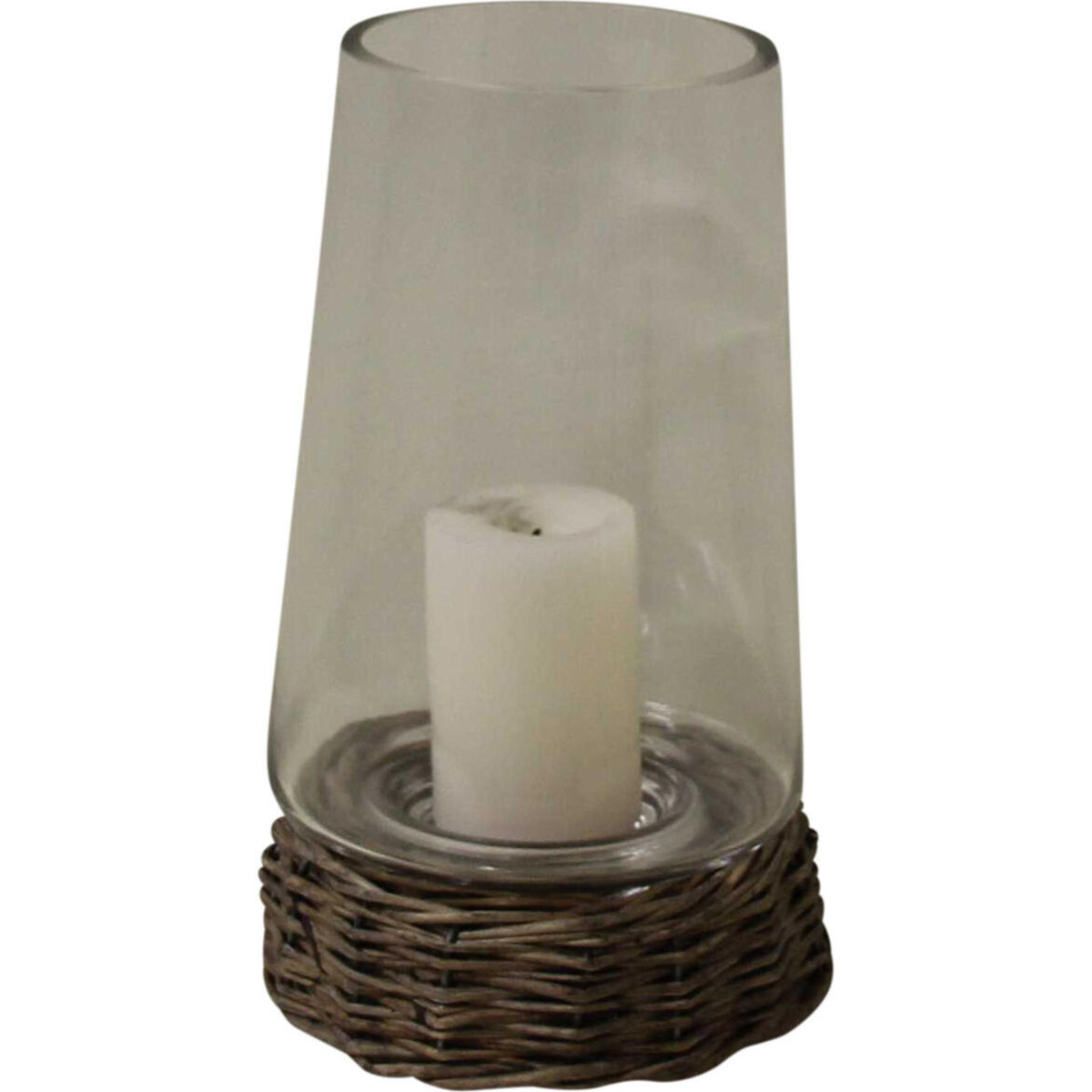A thick glass chimney that has an open top is fitted on its durable willow woven base and it is 12.5cm x 12.5cm x 22cm in dimension with the candle sold separately. Full of versatility, you can decorate its base with some bright coloured ribbons, faux snow, tinsel and holly leaves to create a wintertime beauty look and an attractive tabletop centrepiece. Apart from the usual candles, you may try something different and fill the glass chimney with a vegetative or floral assortment! Have fun mixing and contrasting with coloured pebbles, succulents, terrarium arrangements, sand and shells, or ornamental fillers and present it anywhere you seem fit like in the garden or patios.