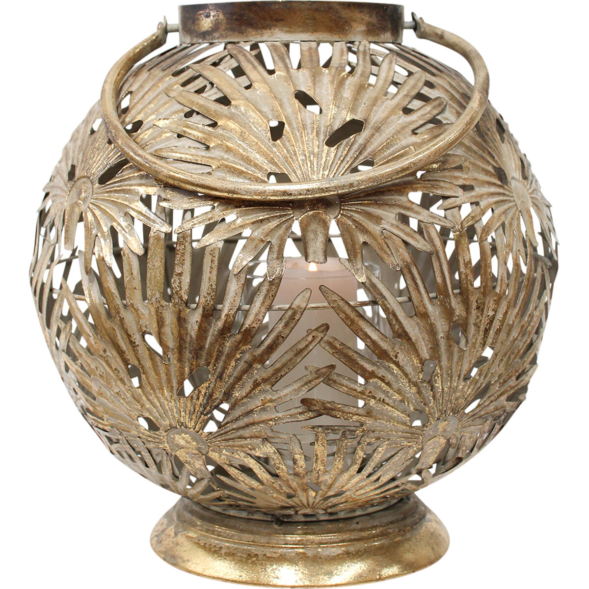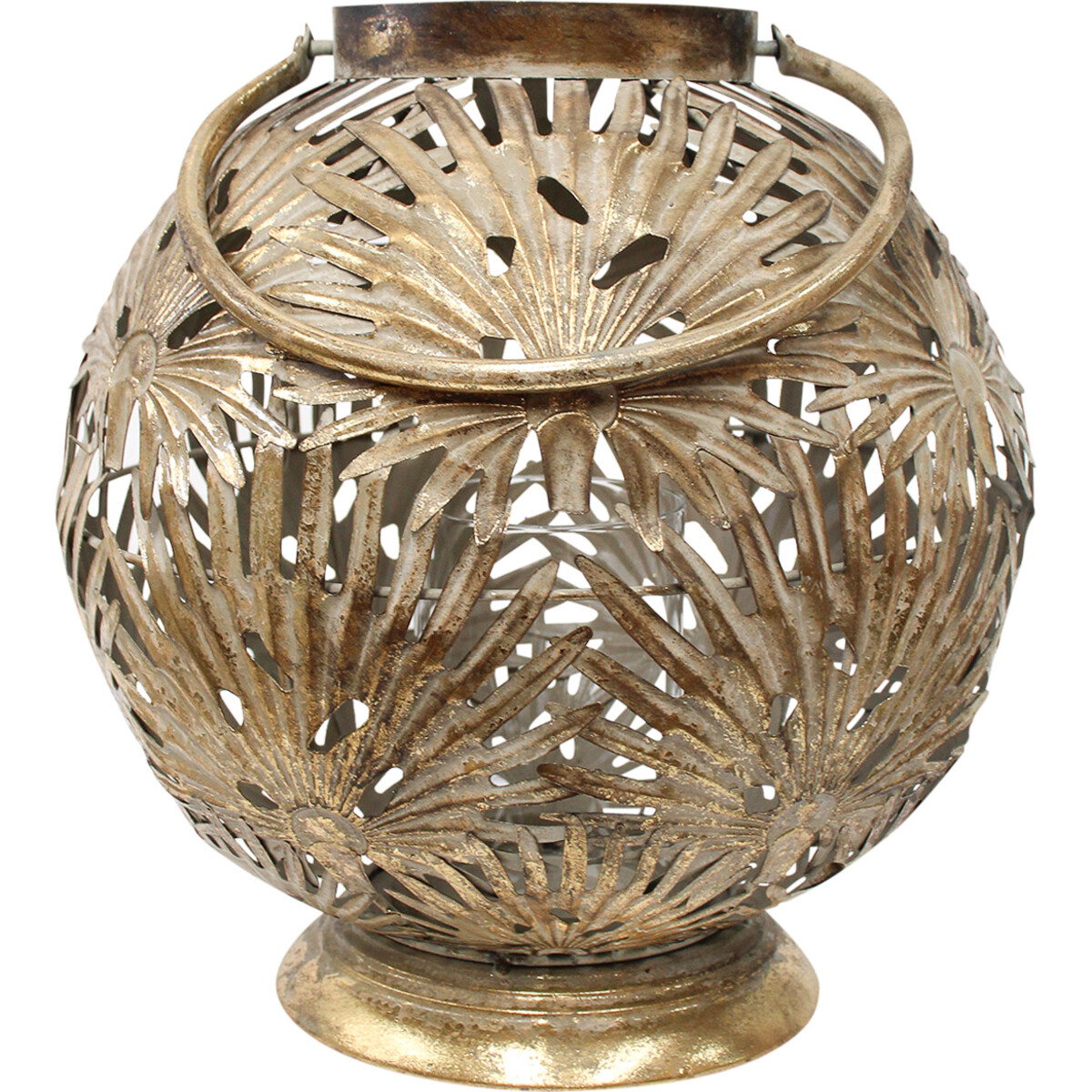 Hurricane Pan Palm sets the right tone for romantic dinner and date. It juxtaposes this gorgeous metal with a scented candle to create enchanting illumination and add a spark to one's relationship. This metal collection comes with a metal handle for easy carriage. Painted in matte gold tone to shows off its natural texture and rustic accent. This metal piece never gets obsolete. It is refined with excellent hardness making it resilient to deteriorating and corrosive action. Breathe low vigour into a living space with a visually appealing metal collection.
