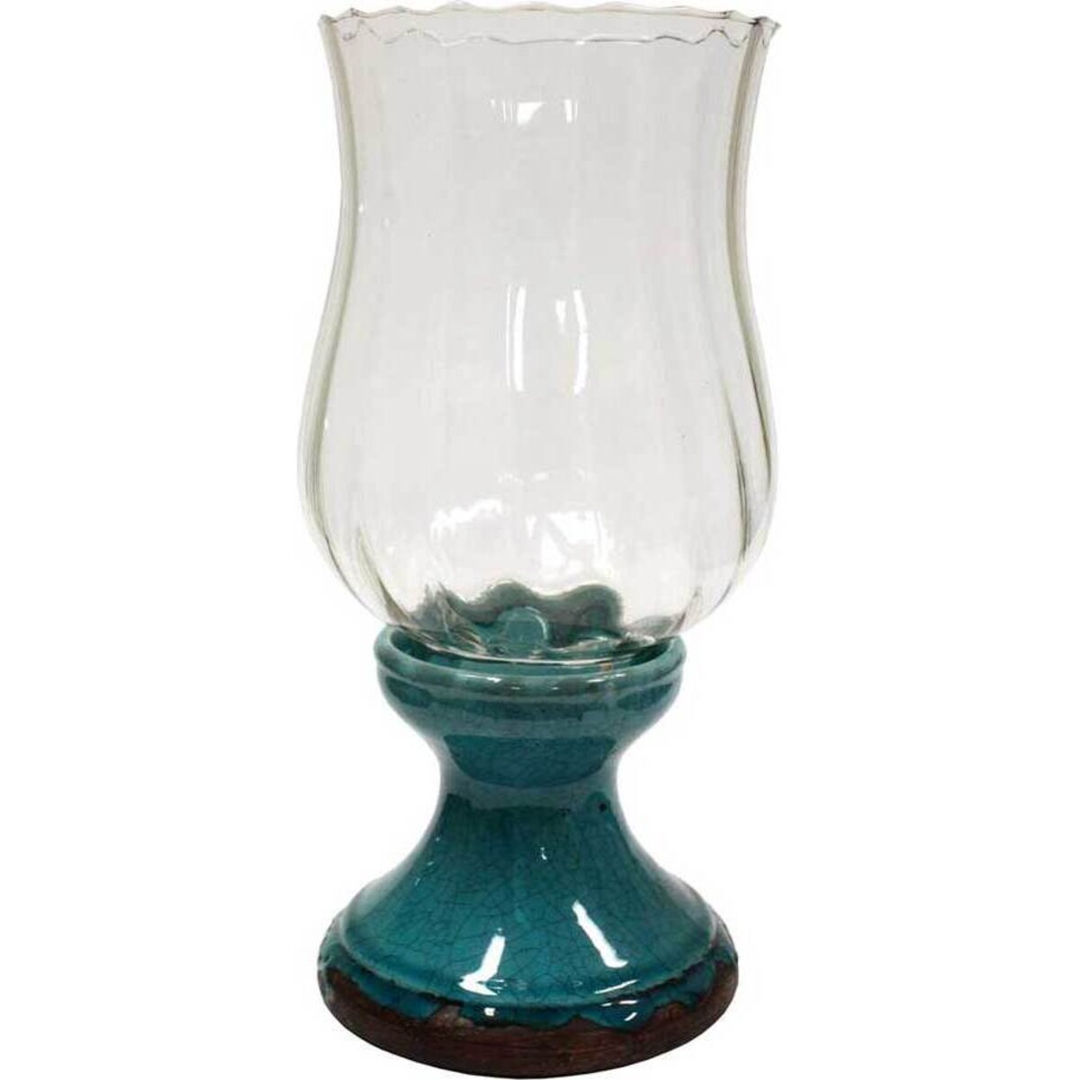 The Hurricane - Teal Onda is a candle holder. But it is not just any candle holder. This is utterly beautiful and wholly serviceable. It can be made the centerpiece of any dining table or even of the coffee table.