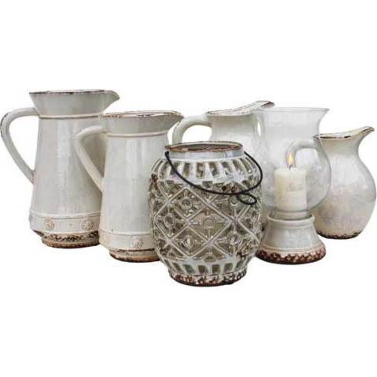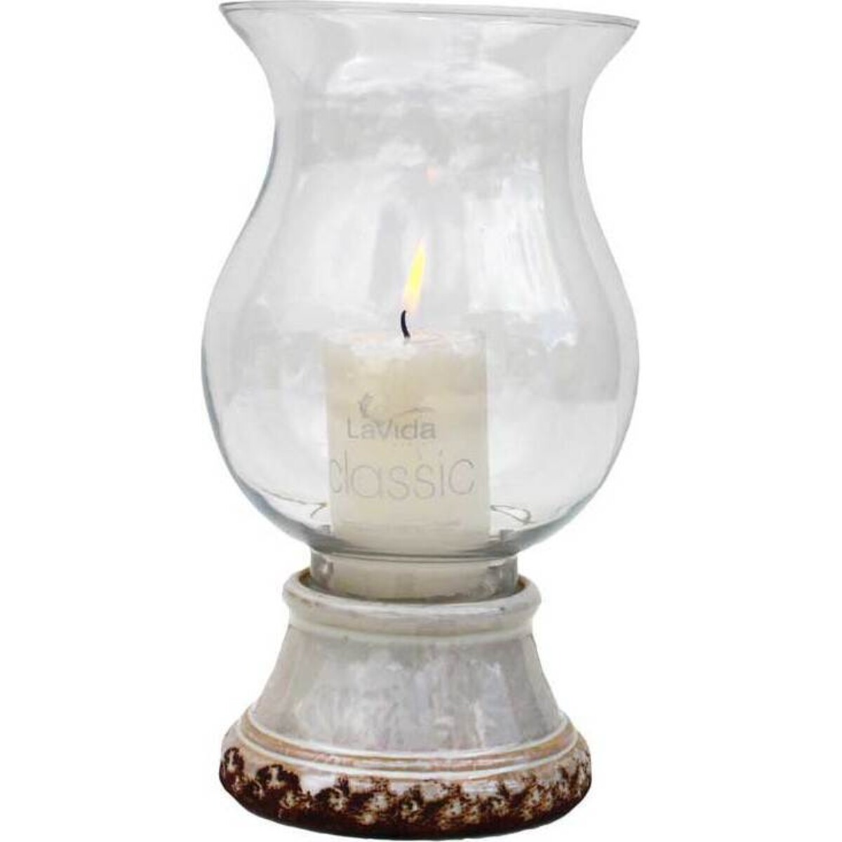 These hurricanes feature a white base that has brown detailing all along the bottom to offer an aged appearance. At the top is clear hurricane glass that showcases the candle beautifully. Whether you use the hurricanes indoors or out, they'll make a wonderful addition to any home. Considering their versatile look, they can be used for a variety of occasions such as weddings, bridal showers, and baptism celebrations. Display them in multiples or individually around the home, but wherever they are, they're sure to get a lot of attention.
