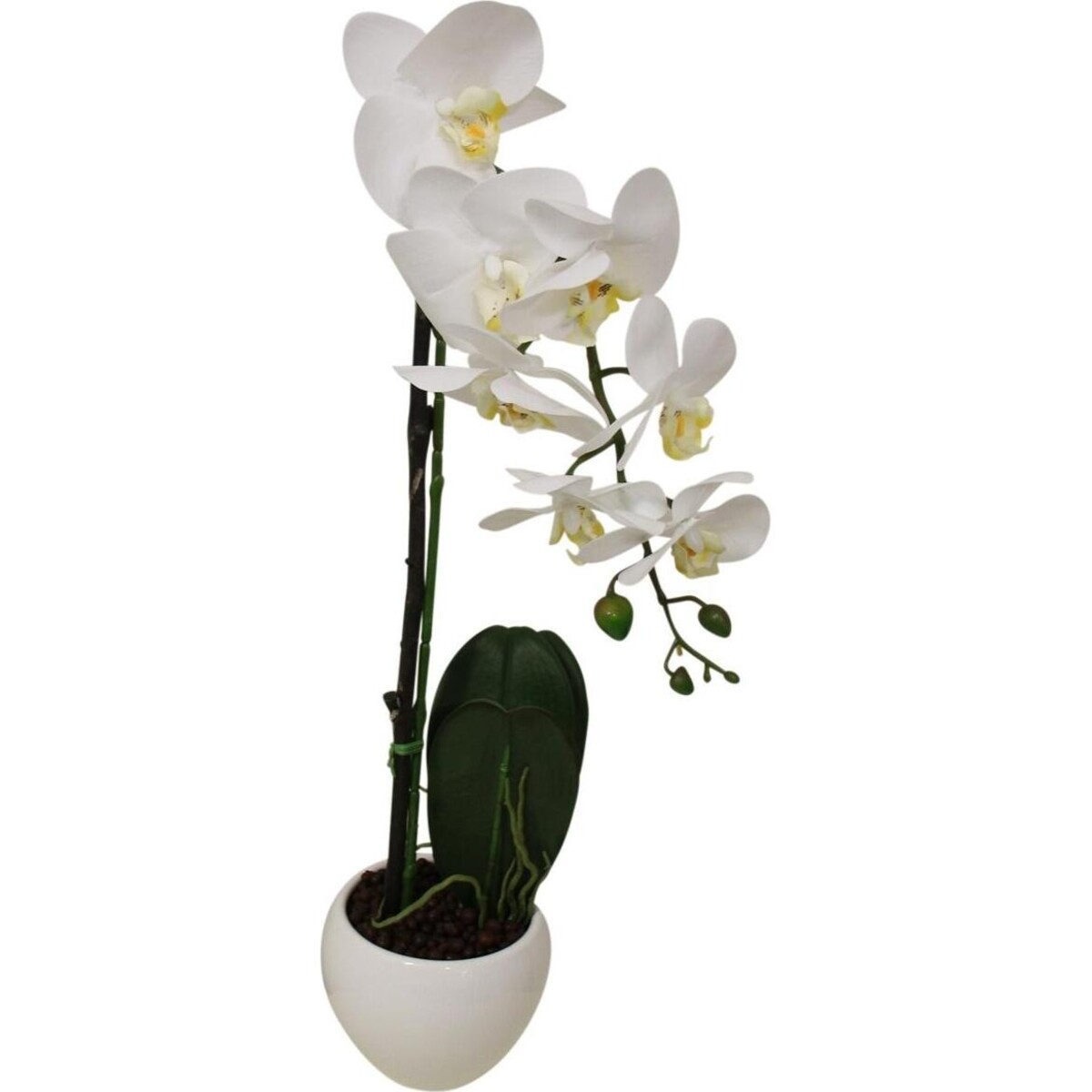 Delight your rooms and spaces with the gorgeous presence of one of the rarest of hot house plants that can be very much apart of your décor. An almost natural feel and fuss free nature makes it a great option for all who would like to add plants to their surroundings but cannot affor4d the fuss it entails. This option is almost like the real life orchid - roots, leaves and blooms - pretty much like the real thing. In fact, the manner in which the single stem and white head of blooms and buds sit inside the ceramic vase adds to its authentic feel. The stem rises to a height of 49 cm and despite its rather tall proportions, it manages to balance rather well in its tiny little planter made of ceramic. Ca be wiped clean with a single wipe of damp cloth. Fil fill up the space with the beauty of its exotic and charmingly unique floral beauty.