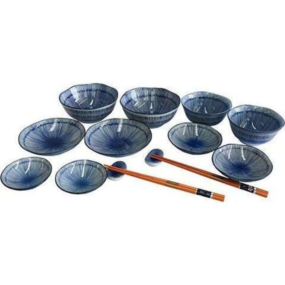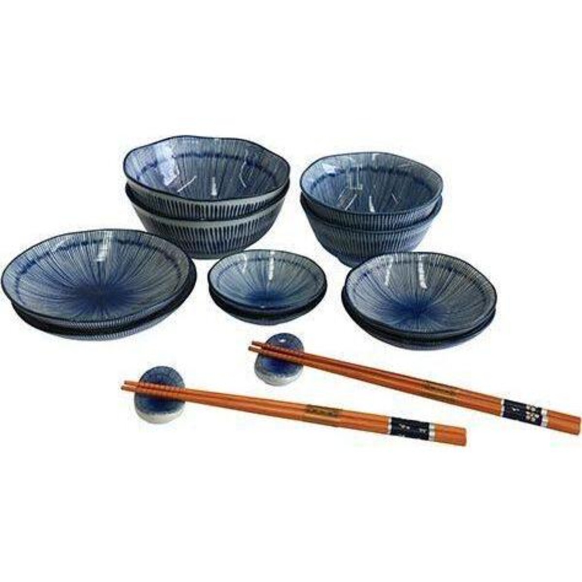 Japanese food a has a certain aromatic quality seldom found in other cuisines and t is not just the preparation, but the time of eating and the way of eating the food that makes all the difference to the way the food tastes. Make your effort at serving authentic Japanese food or even for most far eastern delicacies is this set of porcelain bowls and chopsticks as it will make the food presented on the table truly come alive with all its charm - simple yet eclectic in every sense. Elegant durable and very high quality porcelain makes this must buy for donburi and rice fans. Table ware being as important as serving and flavor of eating this set has ten ices of bowls and dishes in delicate blue colour with two sets of chopstick with their sting plates included. There is something overly elaborate yet innately simple in the manner in which the table needs to be set and this set will help you achieve that look as authentically as possible. The bowls are microwave and dishwasher safe and will be great as an inclusion to your serve ware collection when the time to serve Japanese food arises.