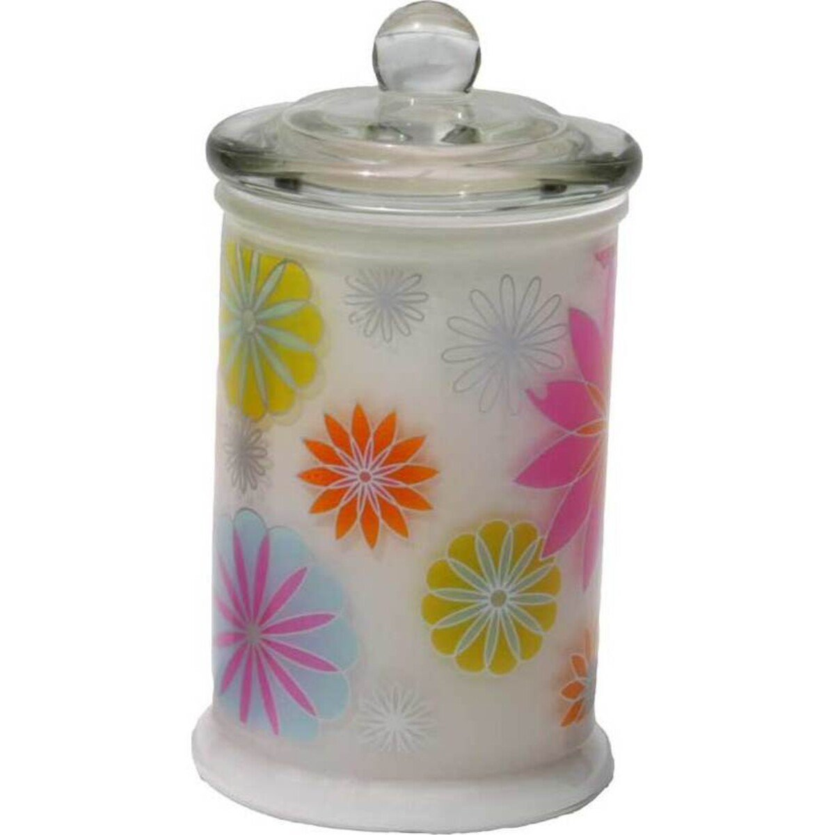 These lovely candle jars are the perfect addition to any dresser display or table dressing. The jars are made from a high quality glass that is safe for use with an ignited flame. The jar used to contain the candle has been decorated with an abstract floral print that is eye catching without being too busy. The great thing about these jars is that once the candles has been completely used the jar can be thoroughly cleaned and reused to store tea light candles and other items, providing a decorative form of storage for use around the home. The floral candle jars include a sturdy glass lid that will look great in place atop the jar (when the candle is not lit). The lids can also be used to extinguish any flames, providing a practical as well as decorative purpose. Each jar contains a white unscented candle that has an incredible length of burn time.