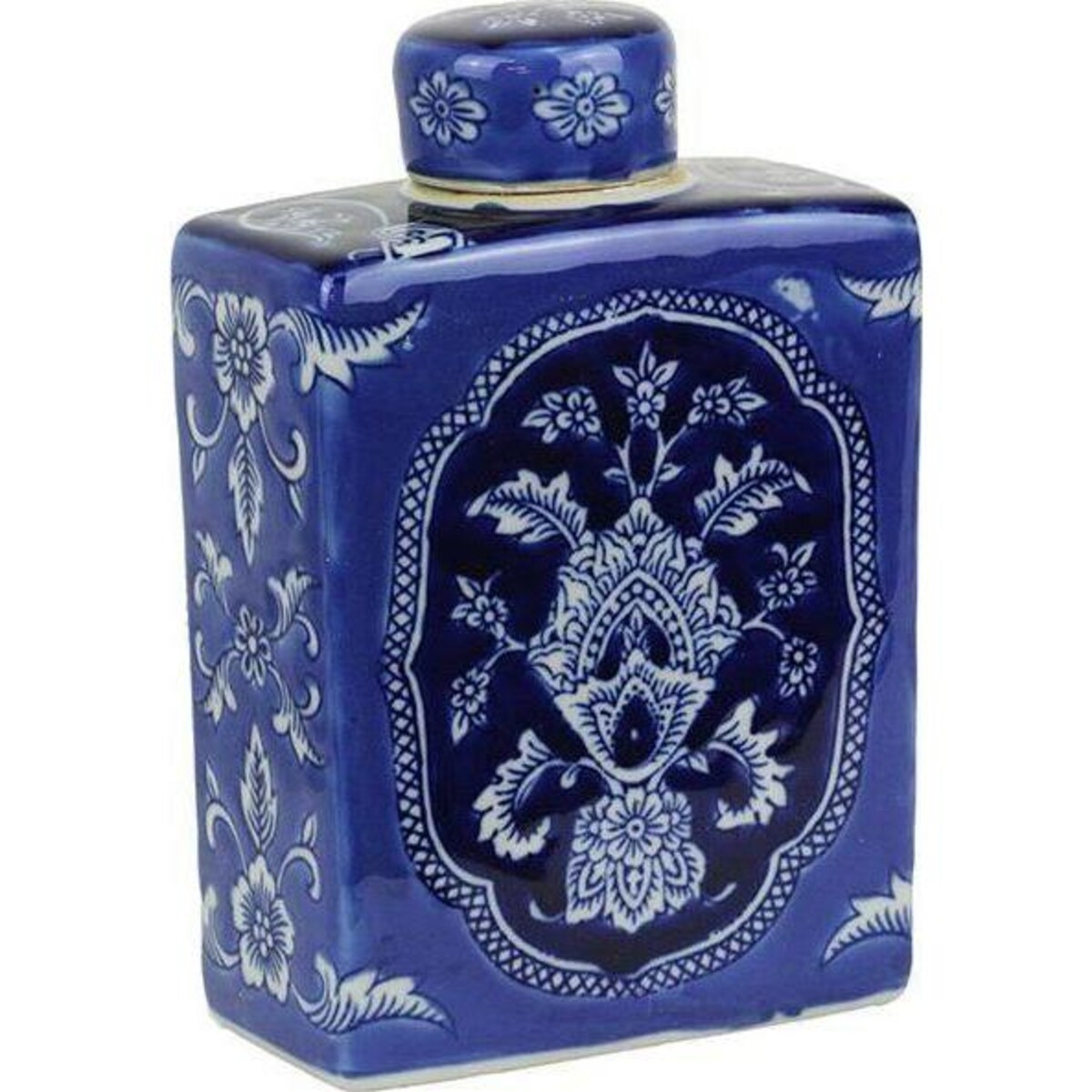 This jar comes with a rich indigo colour - quite Persian in its floral design and interpretation of pattern and yet something richly Mediterranean in its overall look. The white and blue combination can never fail to impress and when it is seen on as shape and design as pretty as this, the charm multiplies manifolds. Here is a lovely 18 cm tall, 11 cm wide and 6 cm in depth bottle that truly makes the other jars and containers look like its poor cousin! A design so replete with highlights that one would love to create a set of such storage jars and make the space come alive with more vibrancy. The jar has a smallish mouth that can be closed with the help of a lid. The piece stands well balanced and would look spectacular standing there holding some secret ingredients that you wish to store in it. A collectible that you would love to add to the décor to lend it more colour vibrancy and a fabulous new enriched feel that comes with things indigo and floral.