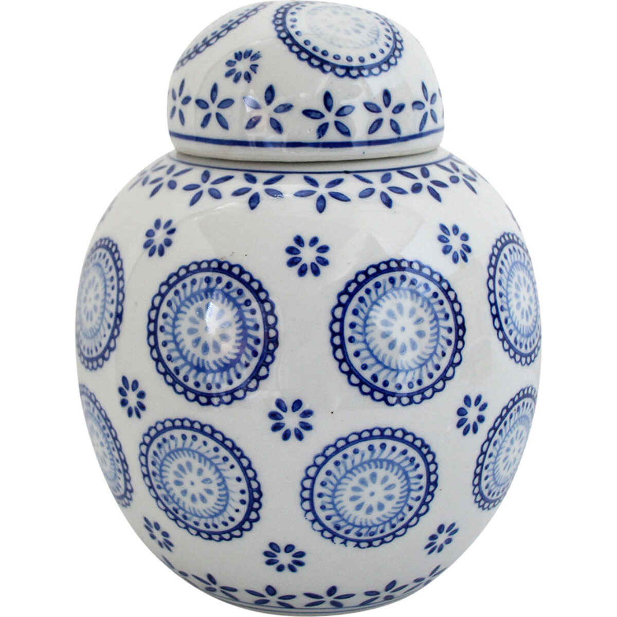 Standing at a portable height which measures 17 centimetres, the Jar Mandala was specifically moulded to give off the utmost of decorative embellishments without really occupying precious space around the home, office, or wherever else would fit in with your customers' decorative cravings. Skilfully hand-painted on the exterior of this jar are good-looking mandala decorative patterns featuring two different round markings looking like stars and a much larger, round floral pattern. The jar has a bulbous shape in which it has a width measuring 11.5 centimetres and an equally sized length of 11.5 centimetres.