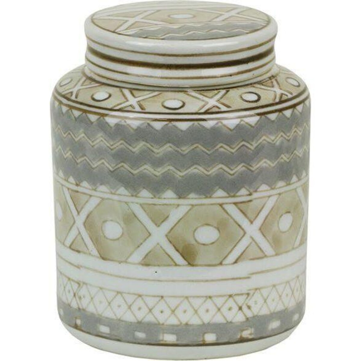 Just about 12 cm in height makes this jar a truly compact little storage space for your tiny little add ons that makes your recipe so covetable. Use it for spices like cardamom, cinnamon or your secret recipe powers or nuts and raisins. These tiny toppings and recipe secrets could be placed in such little containers that reflect the value of the booty they hold. The ceramic jar is dainty, beautifully crafted and has features that can help it to be part of the décor as well as serve its utility well. Could be teamed up with more several such jars or along with the larger version of the Sesenta to make a lovely display in the kitchen or the side board. Add more such ceramic ware on offer from Lavida that always ensure to place only the best offers on original and handmade ceramic for its valuable and discerning customers. The mild grey colour , the intricate design on its body area all so attractive that you will find it difficult to stop yourself from bringing home several of these little beauties.