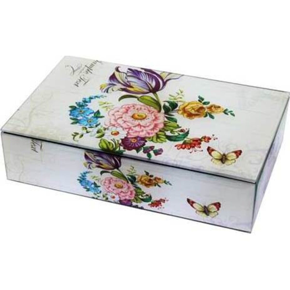 Introducing the Floral Brights Jewelry Box, the perfect decorative accent that does double duty to keep your precious pieces of jewelry neat, organized and safe. The white box is embellished with images of large vibrant flowers and sweet butterflies and will complement your décor beautifully. It'll bring a smile to your face every time you reach into it and you'll find it's just as precious to you as what it contains.