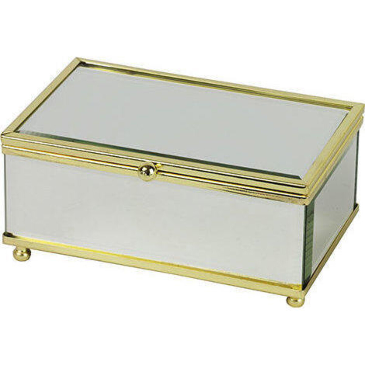When making an invest net in valuable trinkets, do consider giving them a good storage space. This storage chest comes with all the requisite qualifications for the job. Made pf mirrors on the outside that have been patched up with gilt edging, which makes it superbly attractive the box allows a large single compartment for storage. The height of the box is 8 cm and its length is 15 cm while its width is about 11 cm. It has a lining inside to help keep your precious little valuables like new - tarnish and harm resistant. Place this on your dresser and make sure that your favourite pair of earrings or your much - loved bracelet is only an arm's length away. Apart from being a safe haven for them, it also makes a lovely display. Extend its usage if you please as this chest is versatile enough to double up as a space filler or a tea bag holder as well.