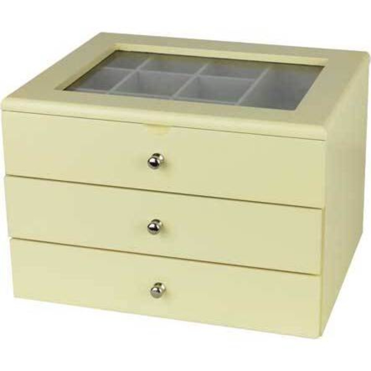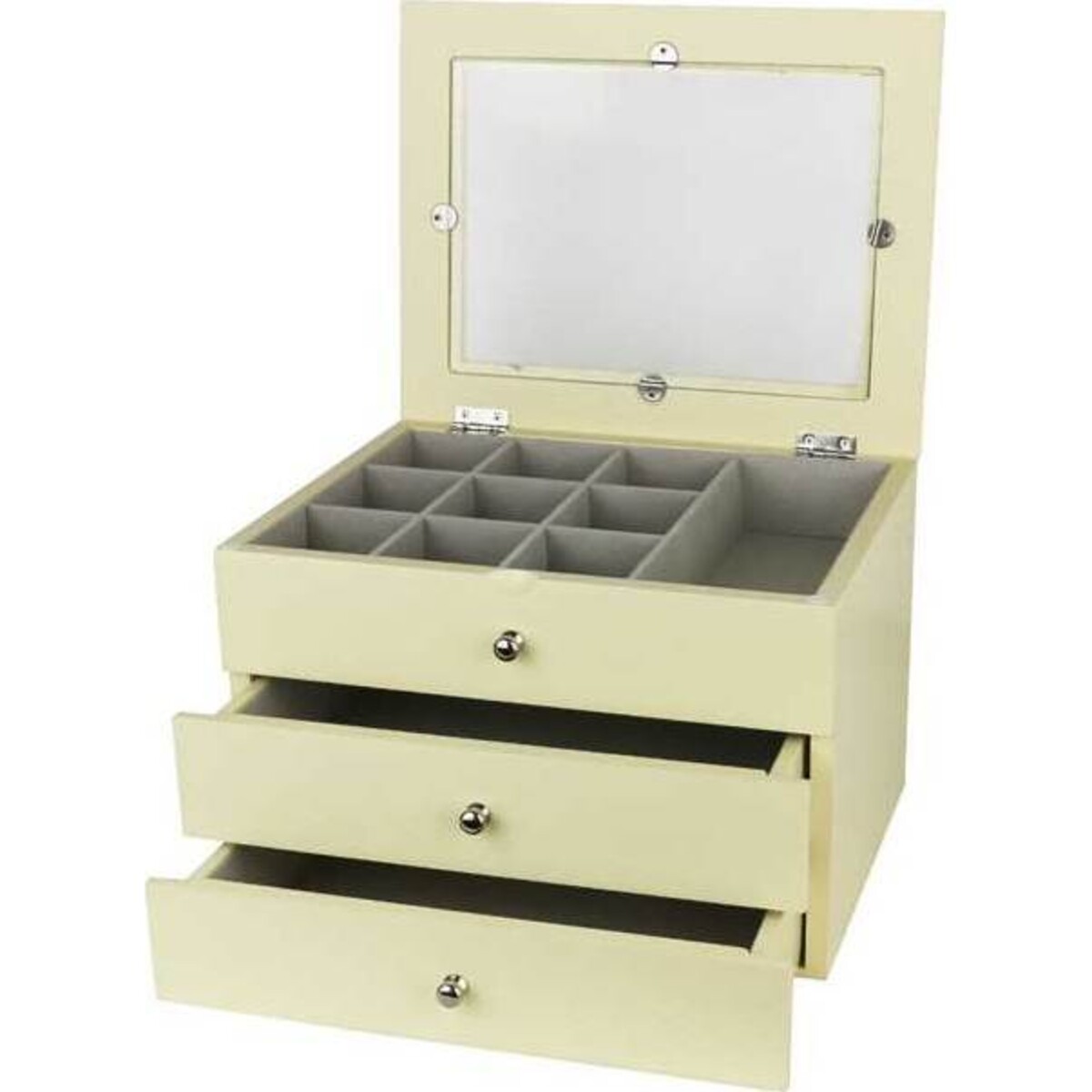 We simply love our trinkets don't we - yet we have always struggled to keep them within an easy accessibility, free from getting misplaced and sometimes even damaged because we have not been able to keep them in the right kind of place where they remain tarnish proof. Delicate as they are, most jewelry need specially created pace for them which will keep them safe from damage and yet so well organized that when in need of something that complements ones outfit we know where we have to look. This three tiered box comes with a compact design which has surprising amount of space within to hold our rings, earrings, bracelets, watches and al things which are tiny and the kind that tend to get misplaced. This 17 cm tall, 25 cm long and 20 cm broad box with a solid structure will provide not just a safe haven but while at its job makes the space look well organized and chic with its gorgeous French créme looks.