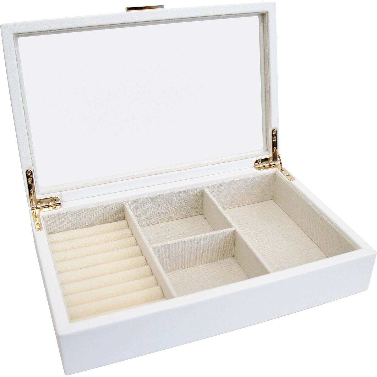 Inside you’ll find linen lining to keep everything protected and four varied compartments - so there’s room for rings, earrings, bracelets and even those slightly awkward statement pieces. And yes, we know the glass lid means this is also prime display real estate for special items too!