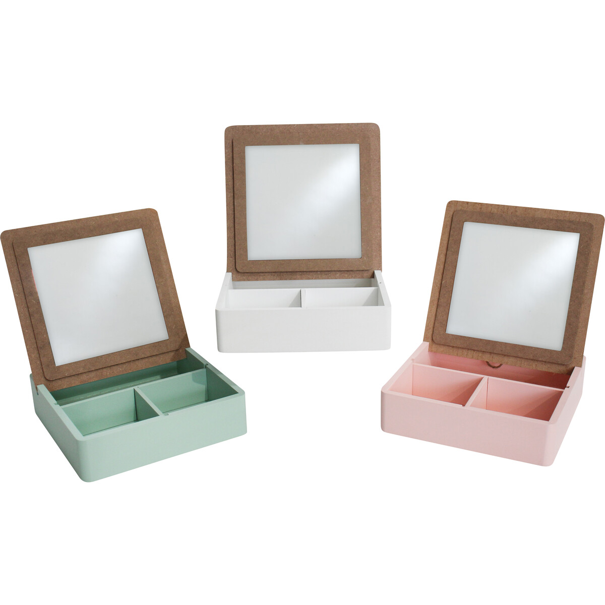 Showcasing a perfect balance of practical jewellery safe keeping functionality and ornamental ornately shaped and painted visual appeal, the Jewellery Box Mint is certainly one of our most recent stocks of jewellery boxes which you really should not miss out on. The box is crafted in a square shaped portable but spacious design using medium density fibreboard material plus the addition of pure quality glass which could be used to appreciate the image of the user’s beautiful reflection while and after testing particular jewelleries. It affords multiple jewellery storage options.