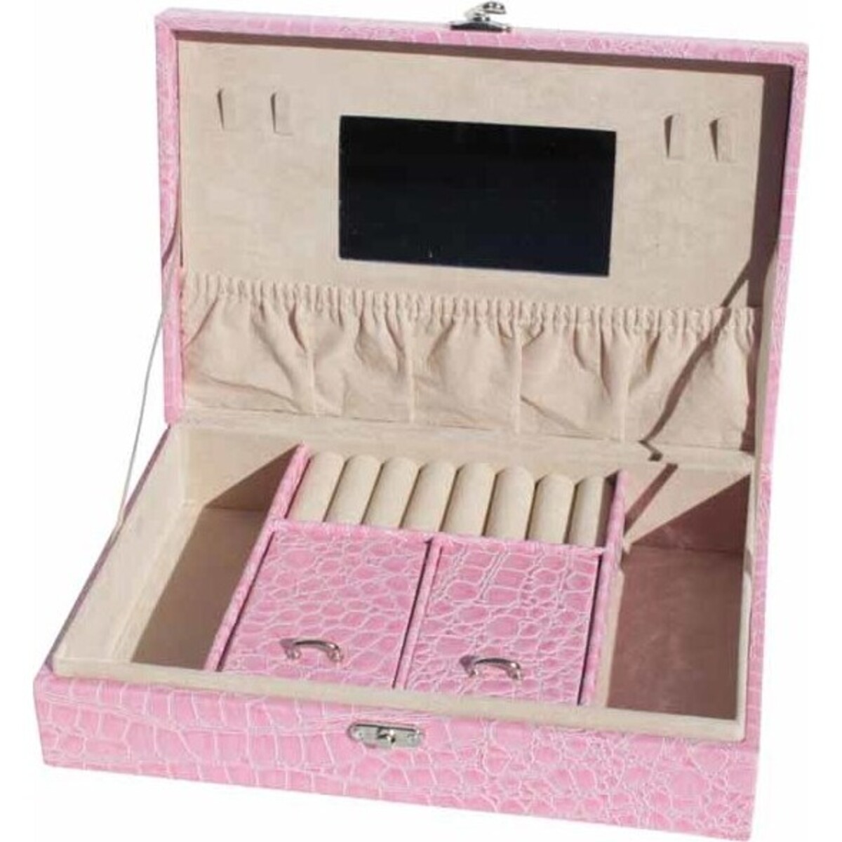 The Jewellery Box Pink Ali Rect is made from pink alligator print that is very popular nowadays. It is spacious yet dainty looking.