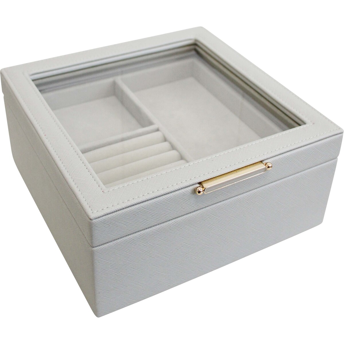 This Jewellery Box Sq Dove is one of those pieces that’s made to hold more than just trinkets - it has a lot of heart in the details. We’ve used MDF, polyester, PU, and glass in its construction to give it that solid weight and lovely tactile feel without the price of solid timber. The finish? It’s a classic dove grey - works with so many decor styles. It’s got just enough warmth but not too much blue in the base tones.
