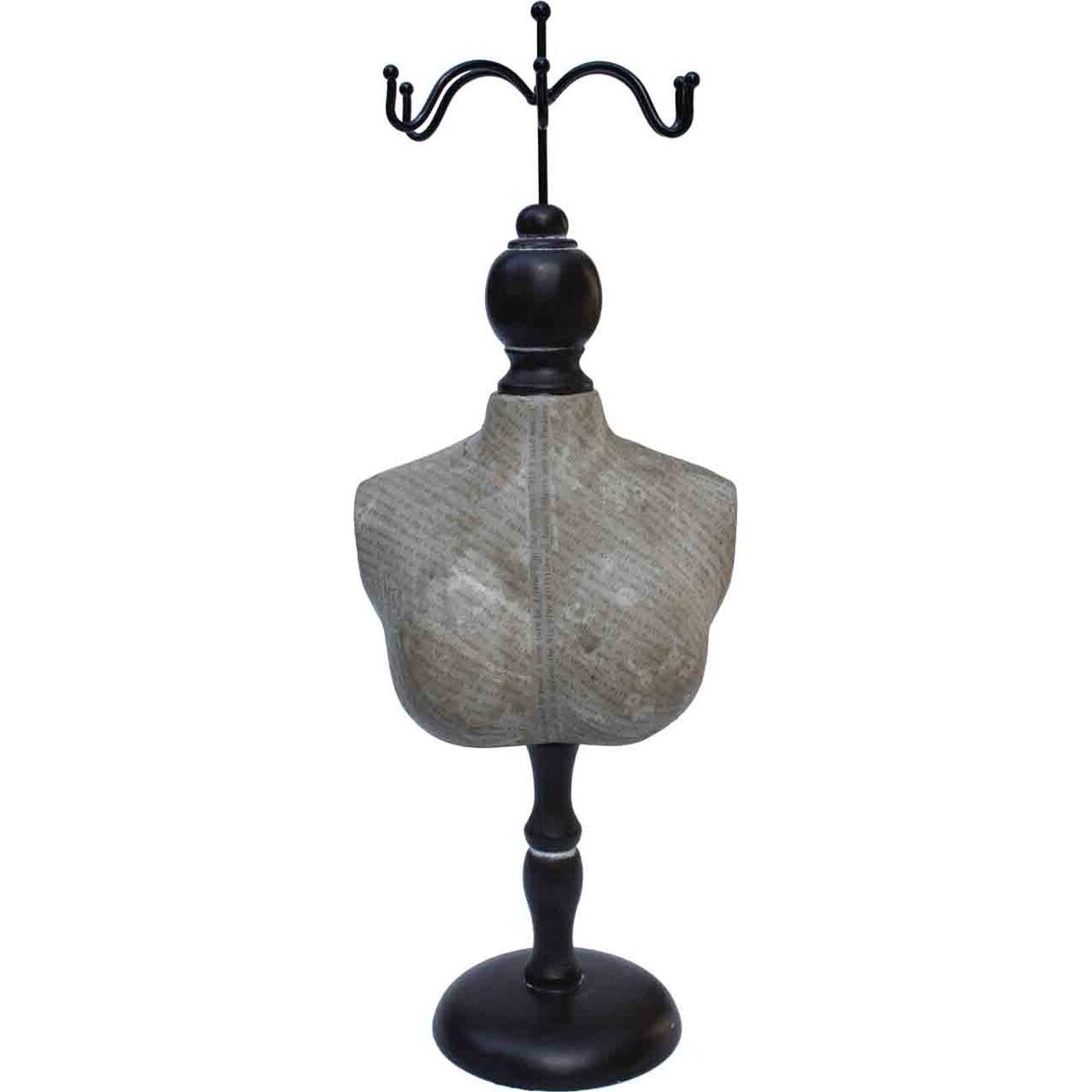 There are numerous features why the Jewellery Bust Antique N Print piece is a priceless investment. This miscellaneous item is more than just an ordinary display stand. It surely and excellently shows off precious items such as jewelleries and accessories. Yet it is a stand-alone piece of décor which is as eye catching and artsy like the precious items it displays. The standard sized display stand showcases the bust features with a trendy and classic look. It has four display hooks at the top of the bust designed moulding. The hooks are made from quality metal materials and painted with black palette. These are attached to the crafted and shaped bust in black upper portion and ivory and brown combined body features. The base of the stand is stylishly shaped and culminates to a wide yet stable base in black.