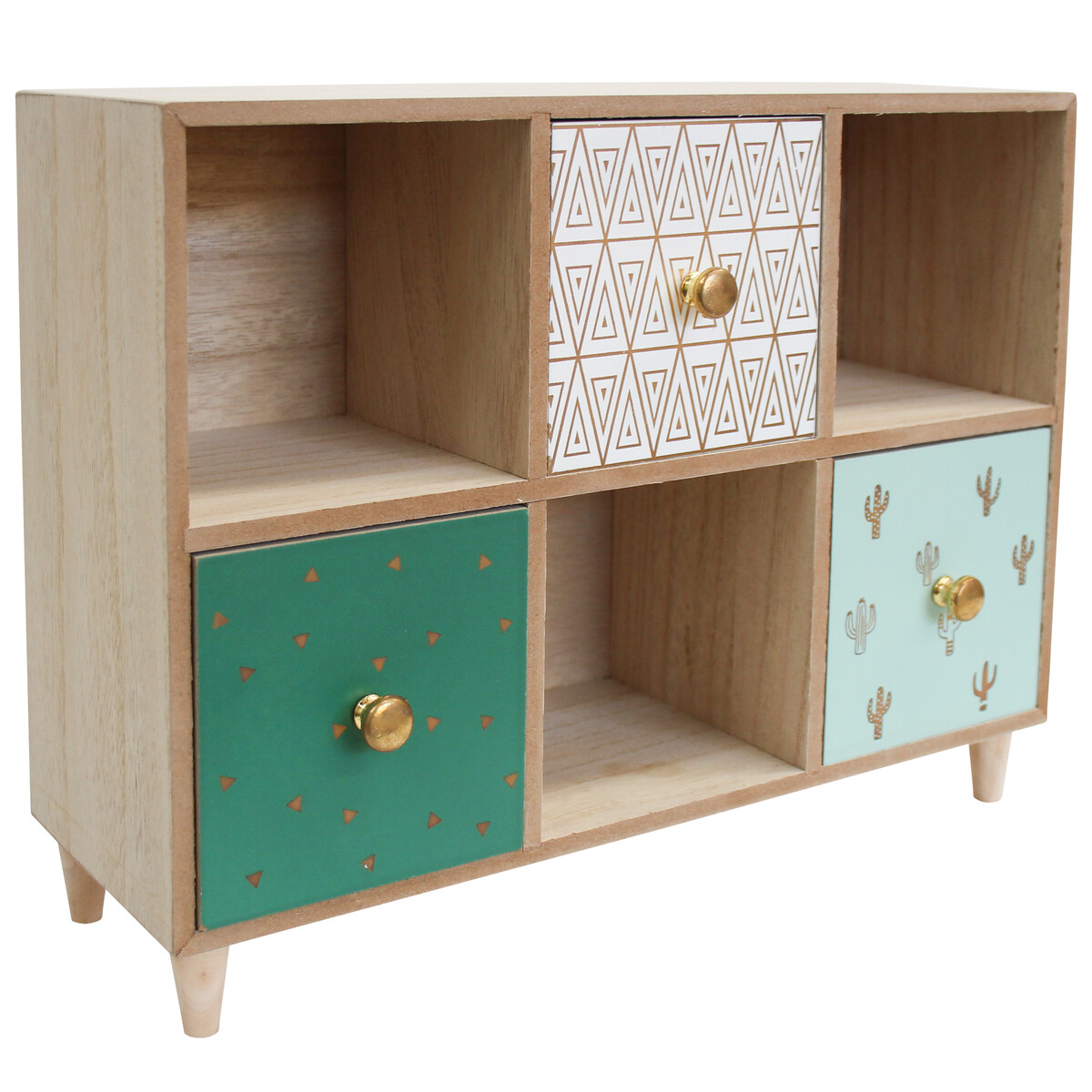 We do really like these for home offices and bedrooms. If you’ve been looking for a super practical but actually, erm, quite beautiful set of jewellery drawers, well we reckon this Indie 1 number is pretty special. It’s the sort of piece that feels a bit breezy - like it’s not trying too hard but still feels considered. The design is just a little eclectic - all three drawers have their own unique pattern, which keeps things interesting but it doesn’t go all over the shop with colour or shape so it’ll work with lots of decor styles. That means it can blend in at home or in an office and easily become one of those pieces that gets used daily. And the proportions are just about perfect - at 32.5x25x11cm they work for everything from necklaces to knick-knacks and office bits and bobs if that's how someone chooses to use them. It makes a good gift, too as it's versatile and built solidly from MDF.