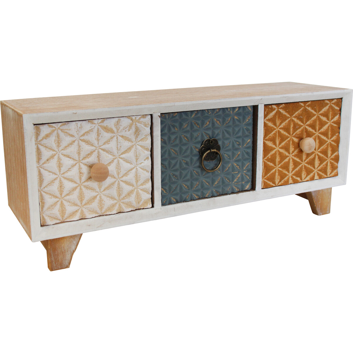 Two out of the three drawers which this Jewellery Drawers Isla 1 consists of can be opened via the use of a wooden knob while the lid of the third drawer can be opened via the use of an ergonomic metallic handle. The middles drawer has its lid decorated in an alluring pine shade of green and also has a metallic handle which makes opening it very easy for customers. The three drawers can be used in storing and keeping precious jewelleries and other such prized possessions safe and away from prying eyes.