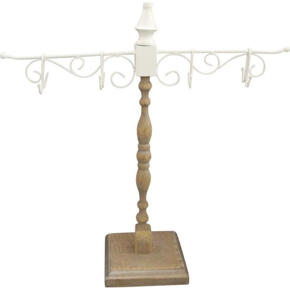 Add this to your dresser or vanity area and say good bye to the guilt of having too many trinkets. Here is a beautiful trinket holder that is created from a combination of metal and wood. The arms like swings open out on both sides' makings space for all kinds of addition you might wish to add to it. The base of the stand is square - made of wood and that contrast vividly with the whiteness of the metal. The dual headed hooks and the scroll design allow one to place hoops, bracelets, earring with hooks, rings and chains across its limb like arms. The scroll design further creates anchorage for other articles as well. The wooden base is large enough to give stability to its rather wide kind of body. In fact, the base of the stand could be used for keeping smaller articles like rings. Neatly finished on top as well. A cleverly created design that will help embellish the look of your dressing space as well as make your trinket feel far more relaxed in their individual slots and spaces. The stand is all of 50 cm in height and its width too is balanced at 51 cm.