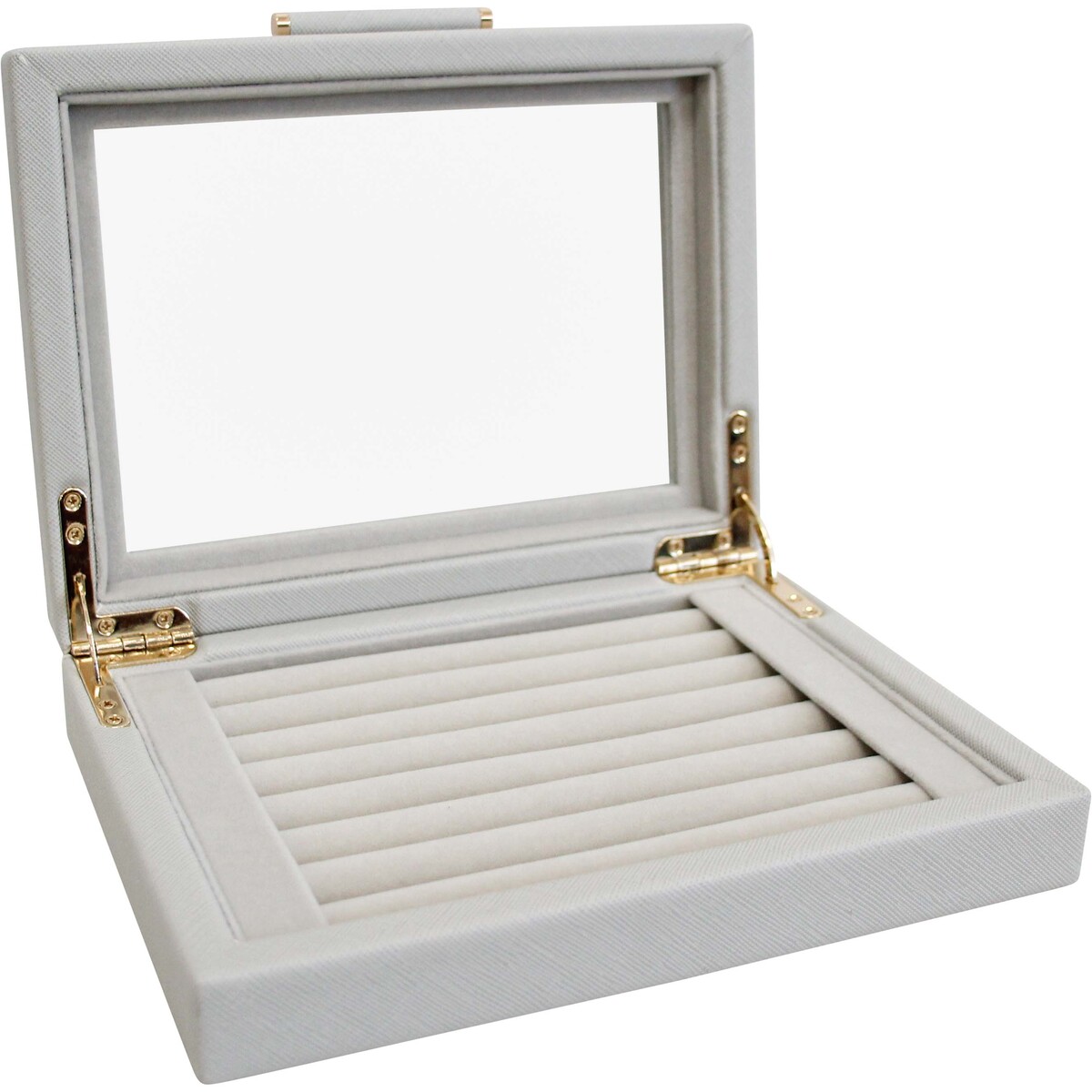 We absolutely love this Jewellery Ring Box Dove. And we can see why it’s a consistent top seller in our inventory – it really makes the most stunning addition to any shop floor or display shelf. We know a lot of our retail customers find their customers come back for more as well! Because it’s so simple yet so versatile and classic, it actually works very well as a gift for both men and women. For jewellery enthusiasts, collectors, newlyweds, or even children, everyone just adores this box and its versatility. It fits more than just rings – many people use it for their earrings, necklaces, and other accessories, even hairpins and brooches. Its see-through glass panel is handy for showing off their best pieces while keeping them dust-free and safe from little hands or pets. The soft plush lining is just as beautiful and comes in a lovely light shade that brings out the best in whatever’s inside. It fits beautifully on top of dressing tables too with its elegant white exterior and gold hinges. The perfect jewellery ring box doesn’t exi - oh wait, it does!