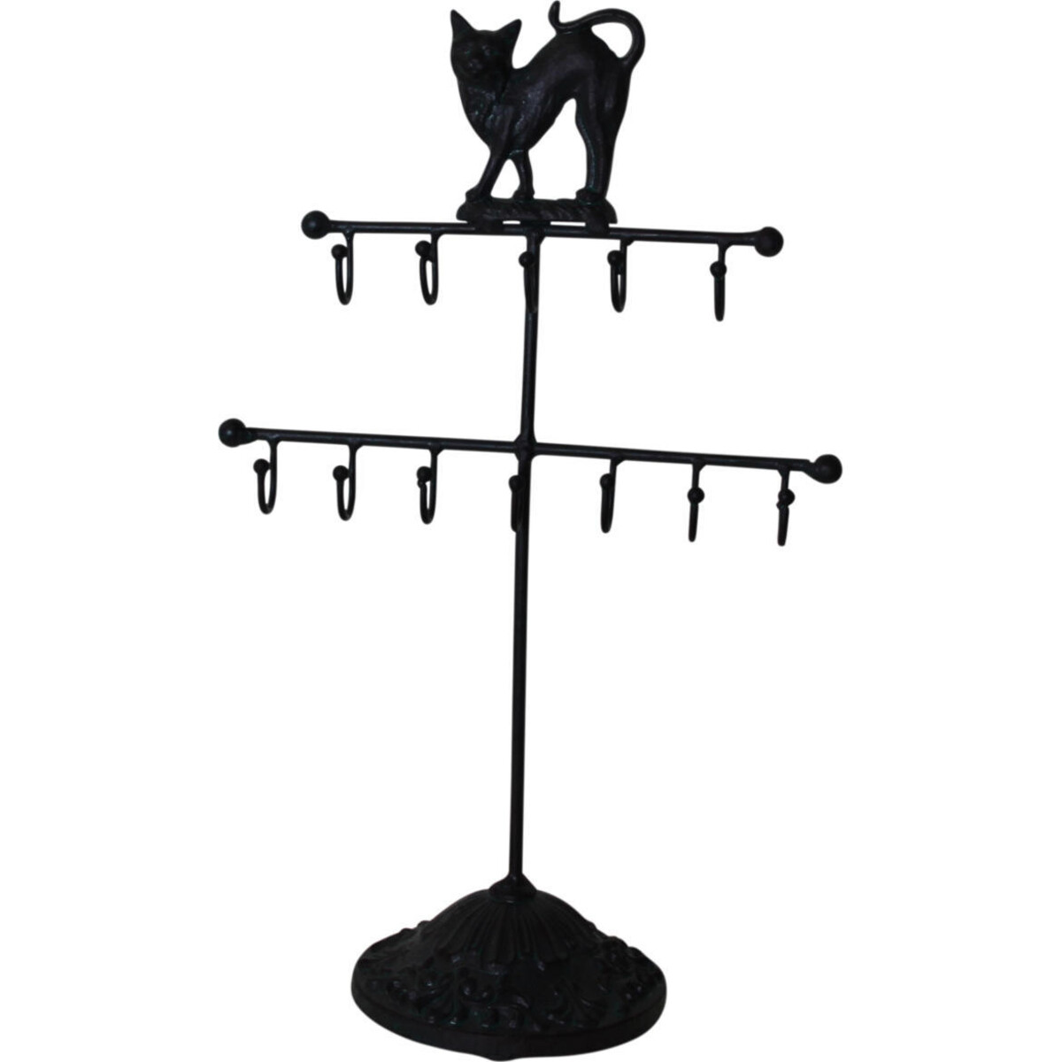 Adding more and more to your jewellery collection was always a passion for you - and why should it not - there are a few indulgences that define who you are and if you have even in control of how well you keep your trinket, what is the harm in a few more excesses! Here is a stand that will aid your collection from being well within reach and always at your disposal. It comes in the form of this metal stand that has a height of 36 cm having two tiers of hooks - the top one with five hooks and the one below its seven - all in all adequate space for bracelets chains, earrings, rings and even watches. The round base has a delicate design in black metal while the upper portion too is all black with hooks in a row. Simple, elegant and a perfect sight to behold when it comes to the manner in which it has been kept sparse in its size and yet super definitive in its functional work. Spans 26 cm and despite its size does balance well on the round base.