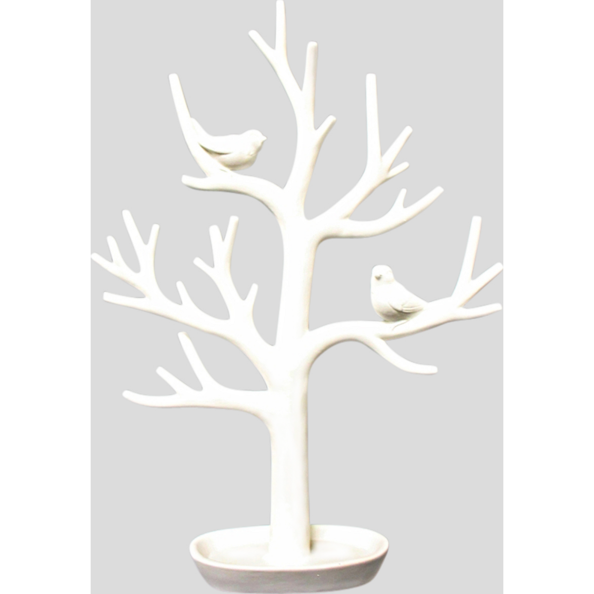 The base is the tray from which rises the many limbed tree-each of the branches panning out to embrace your bangle or allow your earrings to hang from it. Give your vanity area this superbly designed organizer whose resin body will be easy to handle, and will create just the right amount of hanging space for several of your accessories and help you dress up in special way , without the usual hassle. The tress looks all the more charming because of its exquisite white colour and the tiny birds that add the touch of detail and make the functional object appear so very charming. You could sue this tree as much for rings as for earrings, hoops, bracelets and bangles as much as for hanging chains and hair accessories too. There is adequate space on its many prongs and denuded branches. The base of course could be used for tiny studs and pins which cannot quite be draped on the prongs. A wonderful means to keep your ever-increasing collection of trinkets better accessible.
