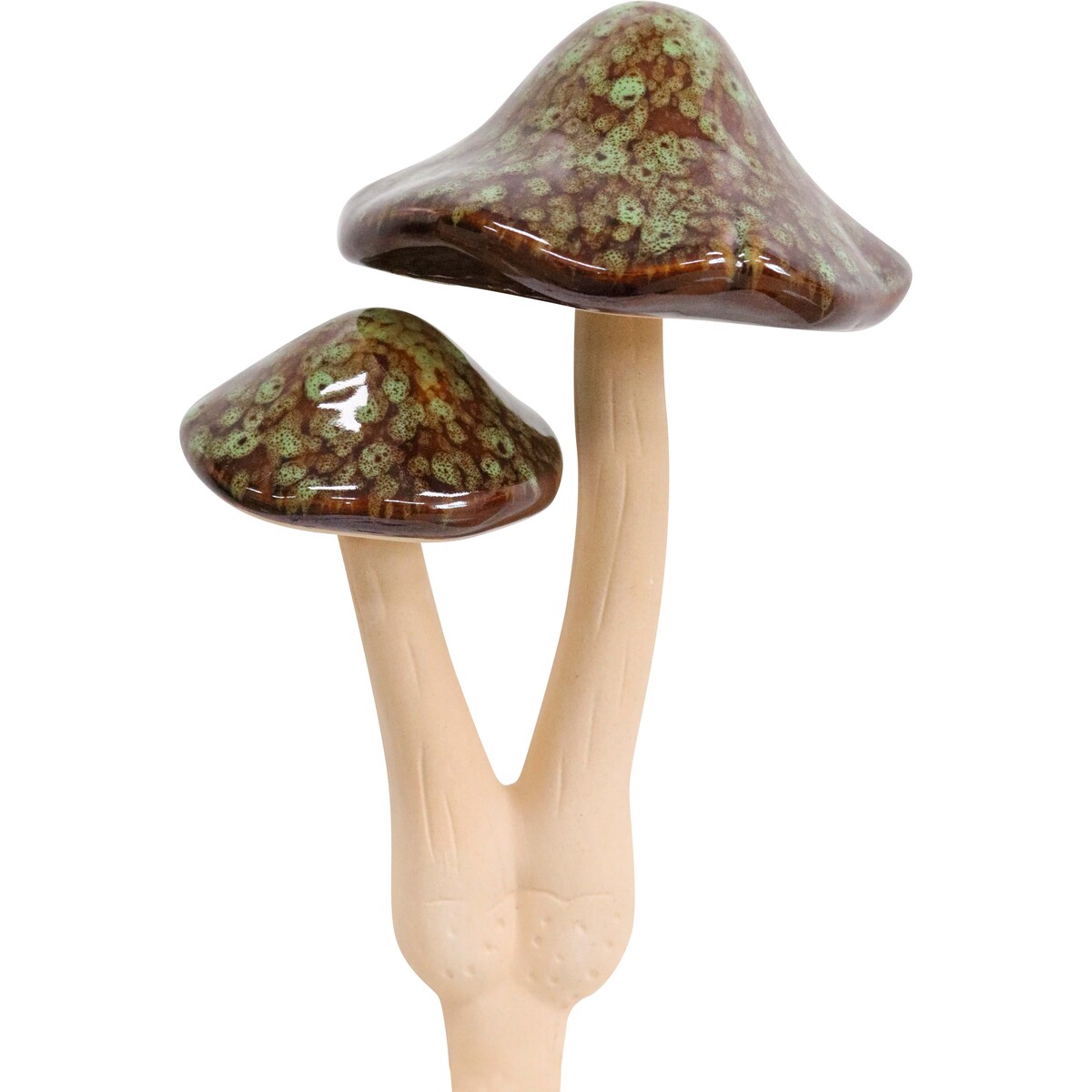 And here’s something a bit fun for the shelf - our Jiggle Twin Mushroom. It’s got that charming woodland vibe but with a beautifully modern finish. What really sets this off is the reactive glaze - every single piece comes out different, which is a proper treat for customers who want to know they’re getting something completely one-off. The caps are glossy, rich and sort of frothy in places, with hues ranging from green to brown that work well in homes after an earthy, organic finish.
