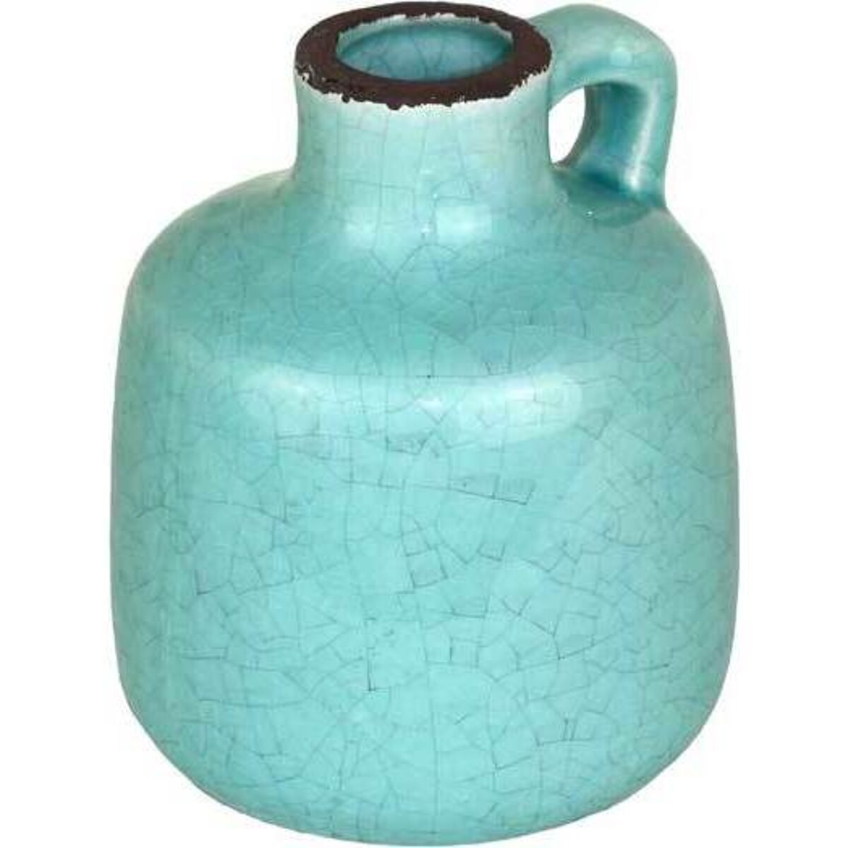 These gorgeous small ceramic jugs feature a vibrant blue facade that's accented with darkening at the opening and a crackle design from the top to bottom. At the top is a small handle that makes these jugs easy to carry from one location to the next. While they're lovely to display as is, they're even better when you use them as vases. Their shape, design, and style make them ideal to pair with short and over-sized flowers such as white peonies or blue hydrangeas. You'll love how much elegance they bring to your space.