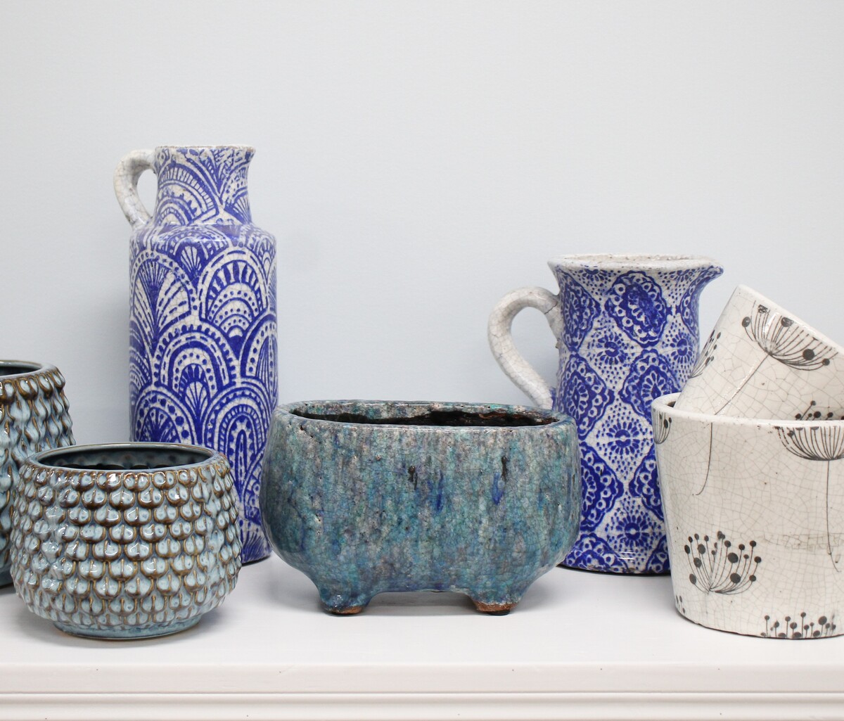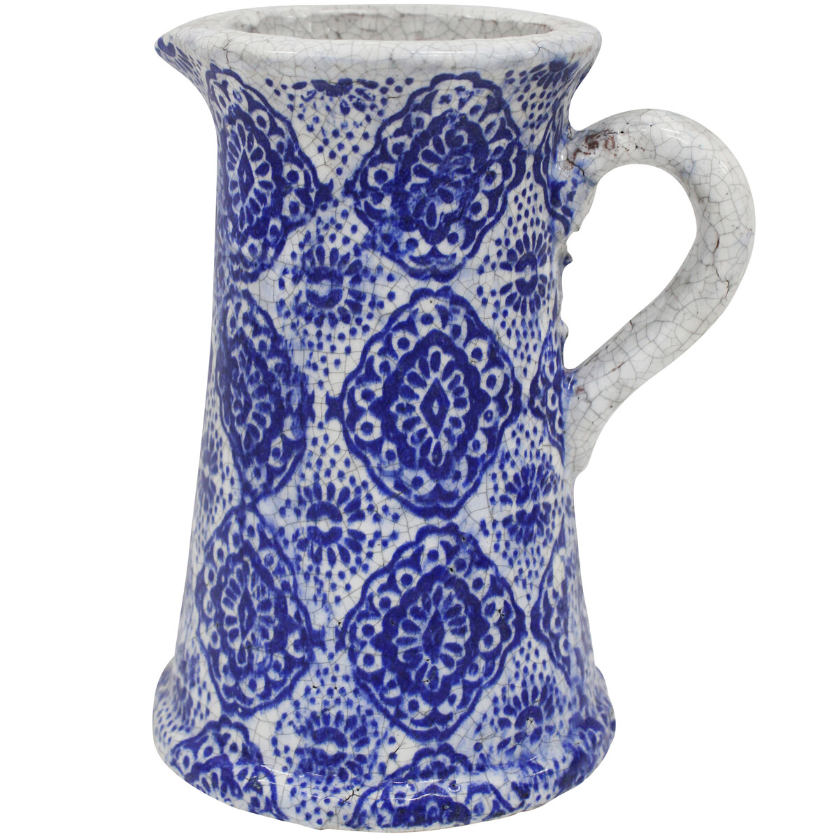 The Jug Curve Sorrento has an irresistible visual appeal due to the combination of its shapeliness, immensely attractive patterned painting, the choice of a predominantly deep shade of navy blue palette and the large sized dimension. Right from the broad base all the way to the somewhat narrowed opening, the exterior of this jug is ornately covered with beautifully patterned images which would create a perfect decorative backdrop to every plant if your customers decides to use it in displaying whatever variety of artificial plant they so desire.
